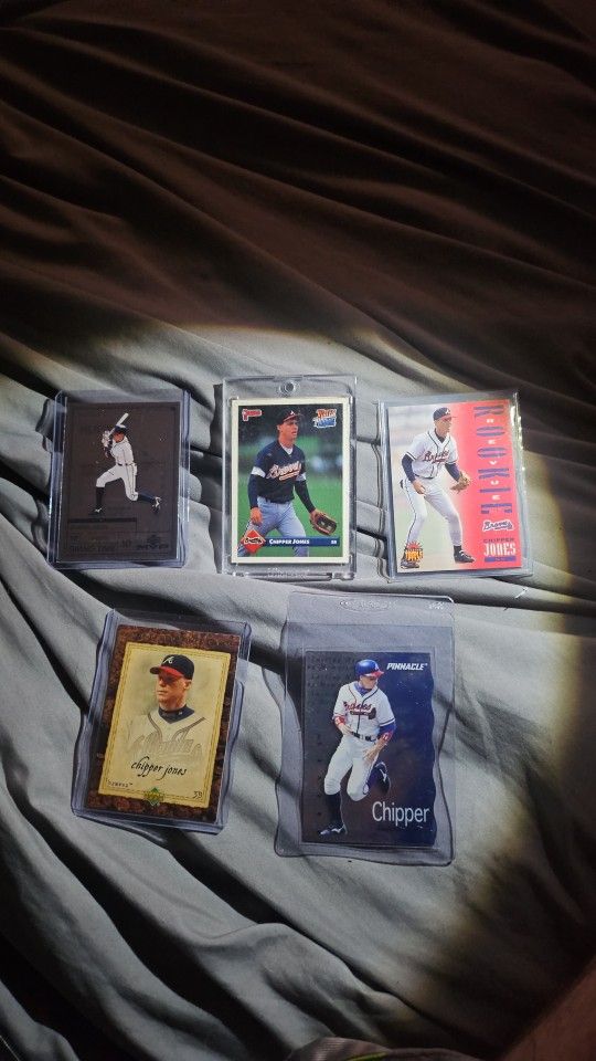 5 Authentic Chipper Jones Mint Baseball Cards. 2 Rookies Plus More