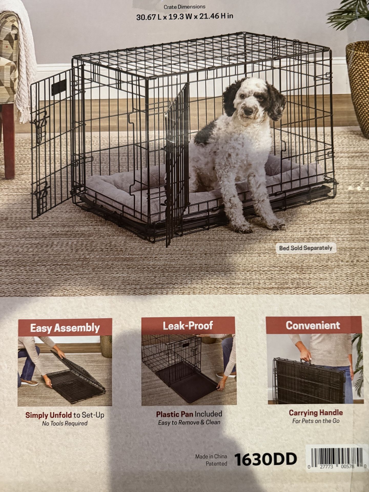 $40obo. Great condition. Bought the wrong size so our puppy grew out of it quickly. He loved it while he was fitting into it. Good for medium size dog. 20-40lbs. Dimensions: 21”x19”x30”