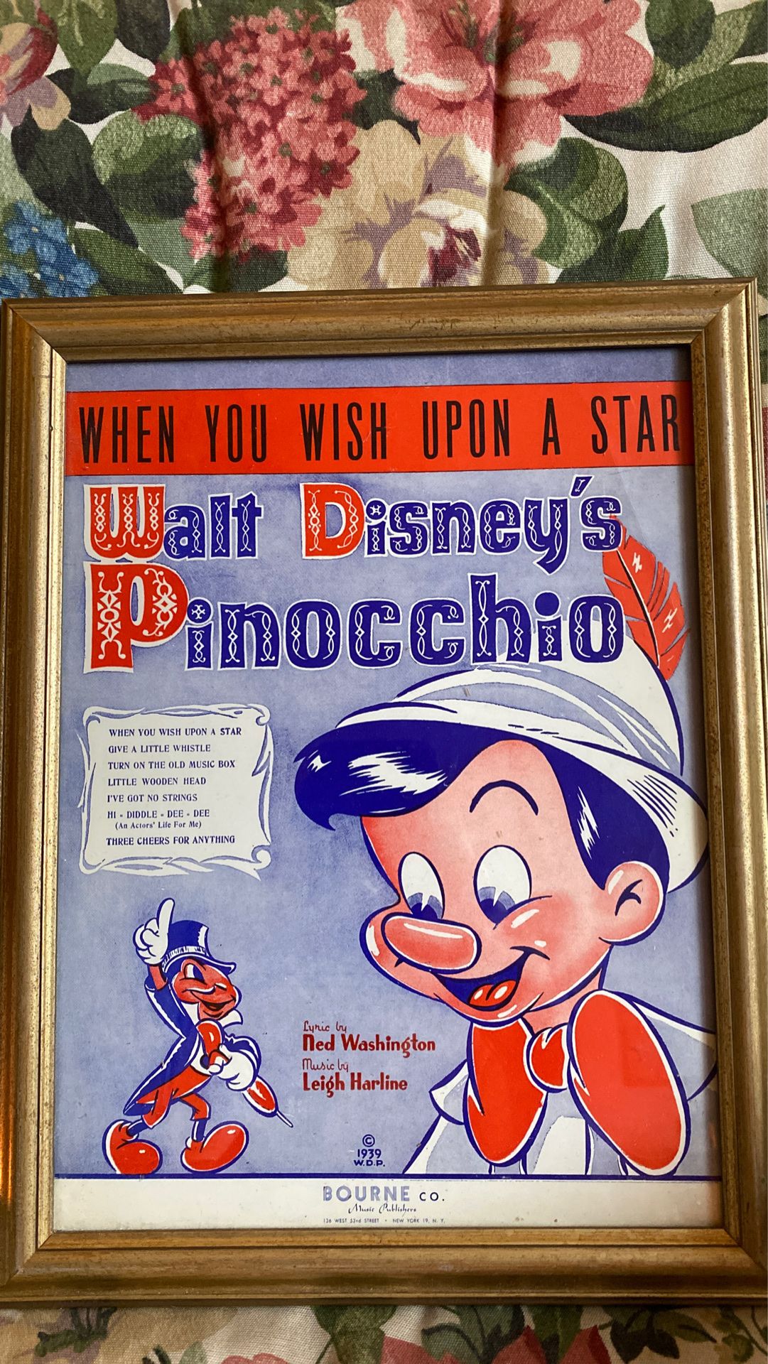 Disney Pinocchio when you wish upon a star. sheet music from 1939 mint shape. Framed have more Shirley Temple and much more