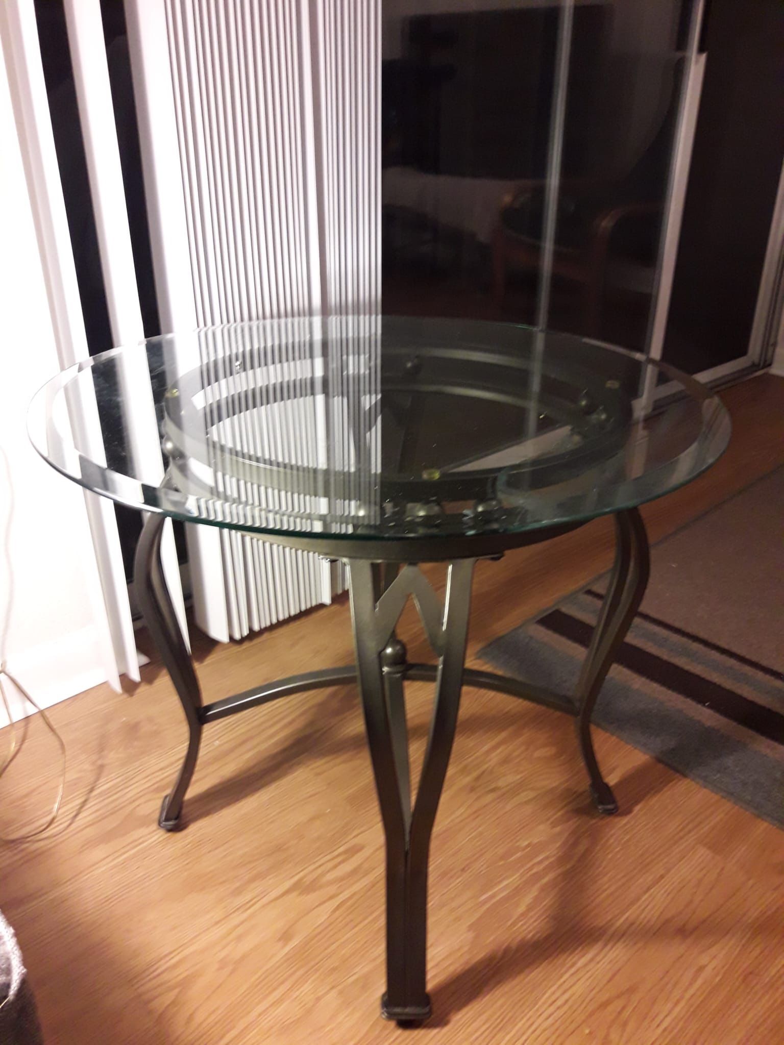 A nice set of 2 side coffee tables, metal frames with nice round glass top,. 22 inch height and 26 inch diameter. $30 each, $50 for both, or best offer