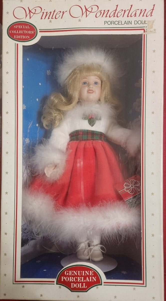Approx 17" tall, Winter Wonderland, collectable porcelain Doll, Excellent used condition, from non smoking/pet friendly home, selling out collection, she's always been sitting up on a shelf, like new, X posted, $12.00