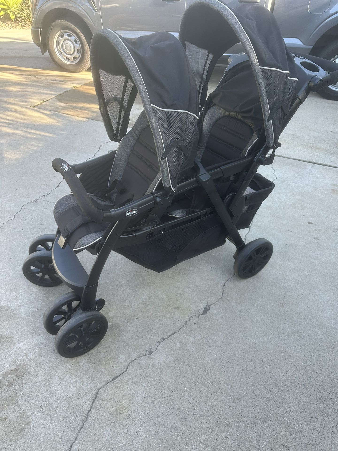 Chicco two seat stroller. Barely used and in great condition. Overhead shade on both seats, cup holders, and large storage underneath.
