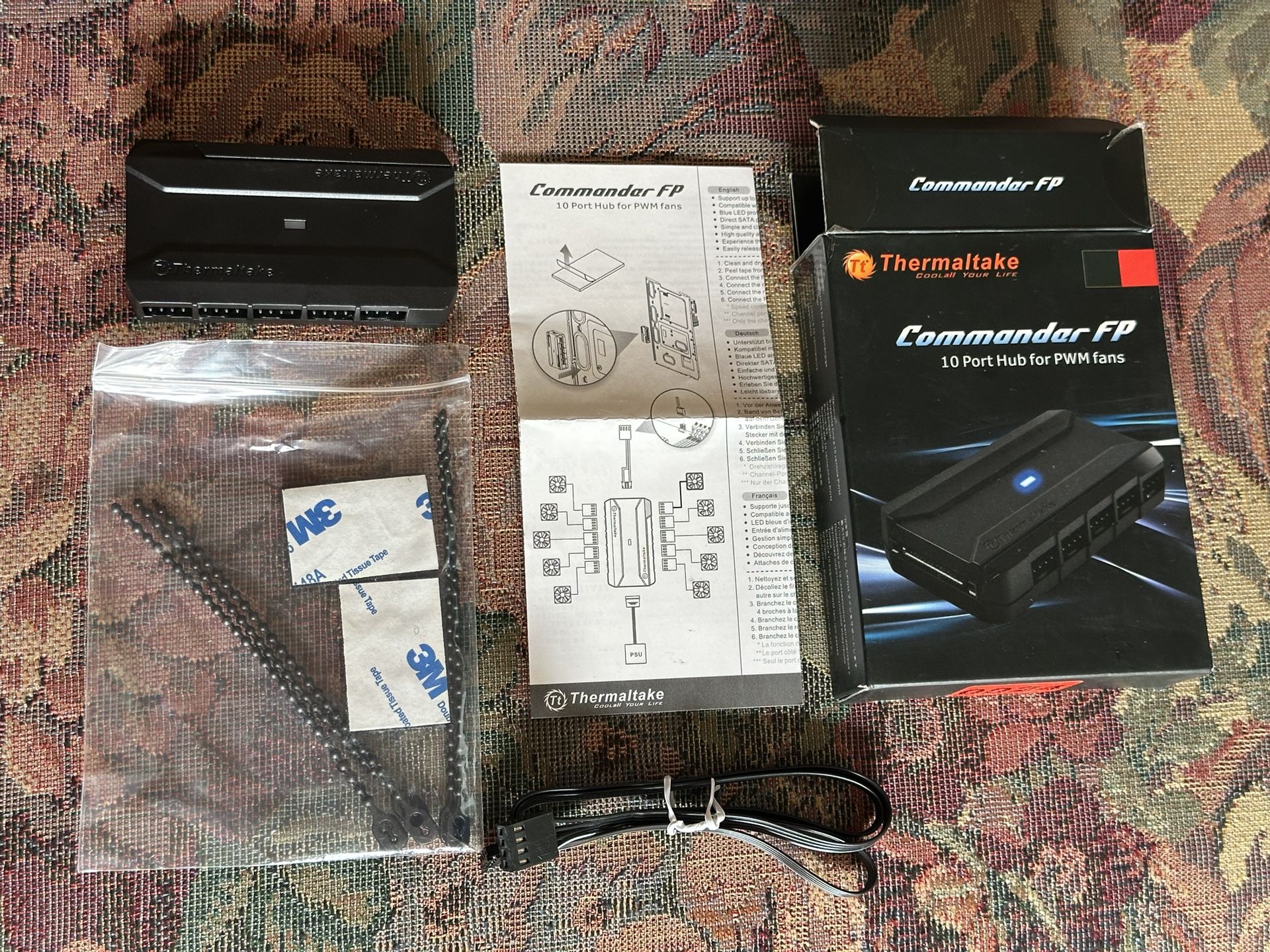 Thermaltake Commander FP - 10 port hub for PWM fans. Open Box, unused. Description from back of the box: • Support up to 10 independent PWM fans • Blue LED provides power indication • Direct SATA power input • Simple and clean cable management • Compatible with 3-pin fans* • Experience the unrivaled airflow and water cooling capabilities
