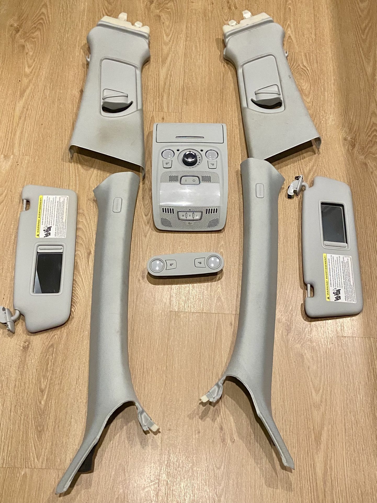 A and B pillars, visors, front dome light/sunroof switch and rear dome light. Pillars could use a cleaning. Make an offer. Front seats $50 Ea OBO Bottom and upper left side of rear seat $25 Ea OBO Door panels $25 Ea OBO