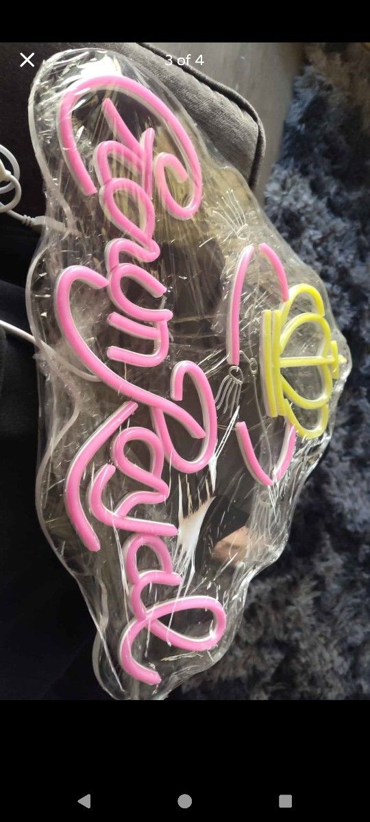 New Crown Royal neon sign. Still wrapped in plastic, never used. Pink and yellow colors, super cool for your bar or party spot. USB plug with an on/off switch.