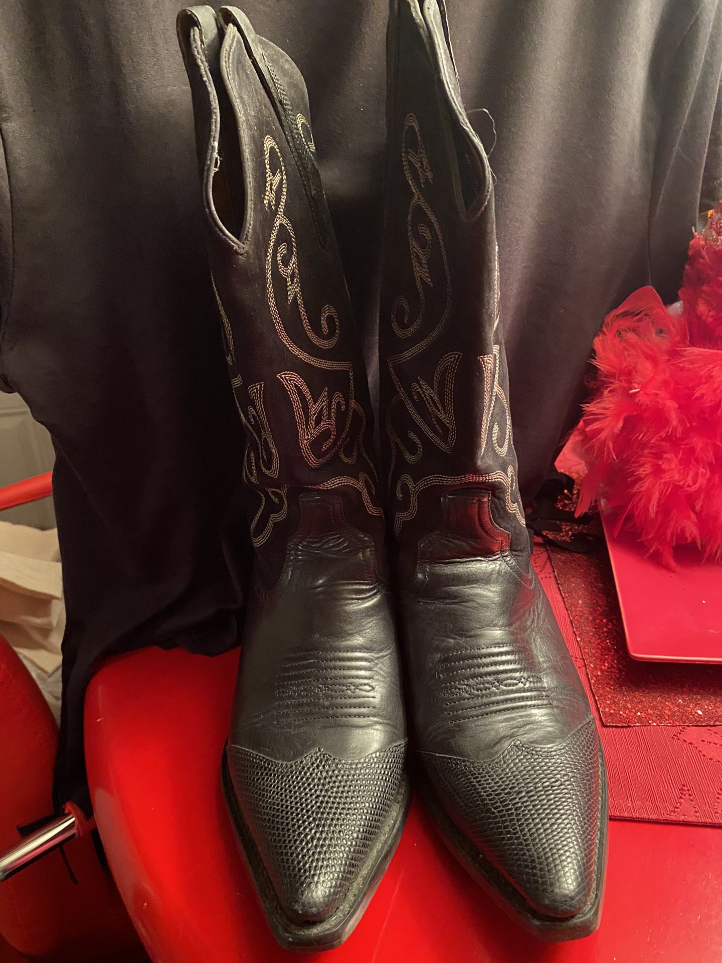 Black cowgirl boots. They are a size 9.5. They are in great condition, CASH ONLY payment