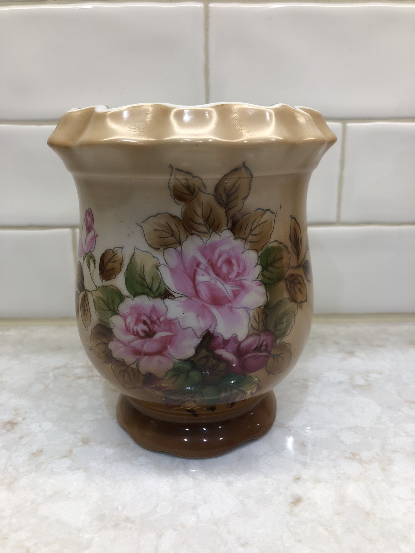 Vintage Lipper & Mann Lusterware Hand Painted Flowered Japanese Vase. 1(contact info removed) No cracks or chips