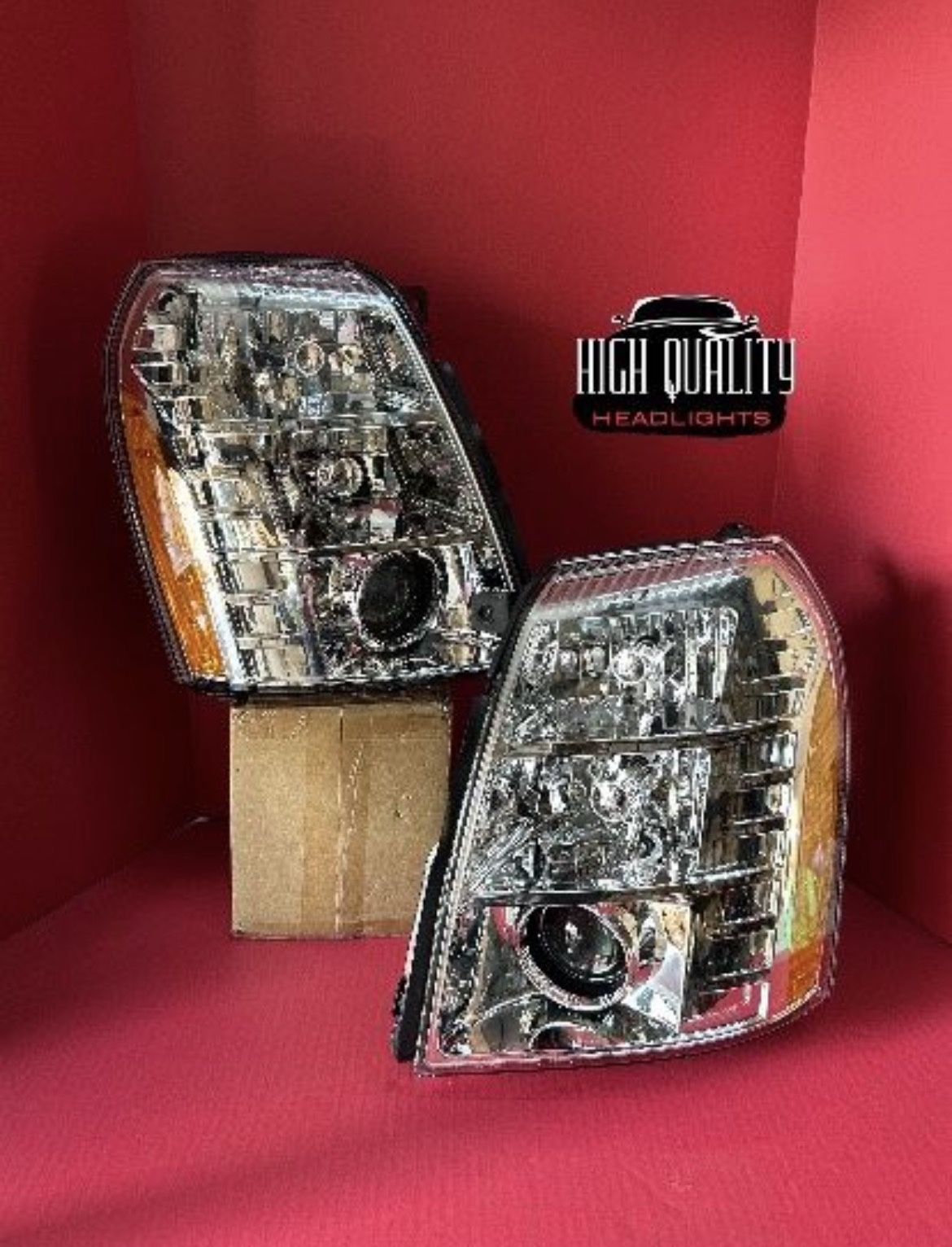 Set of headlights for a Cadillac Escalade chrome amber OE style 2007. 2008. 2009. 2010. 2011. 2012. 2013 and 2014