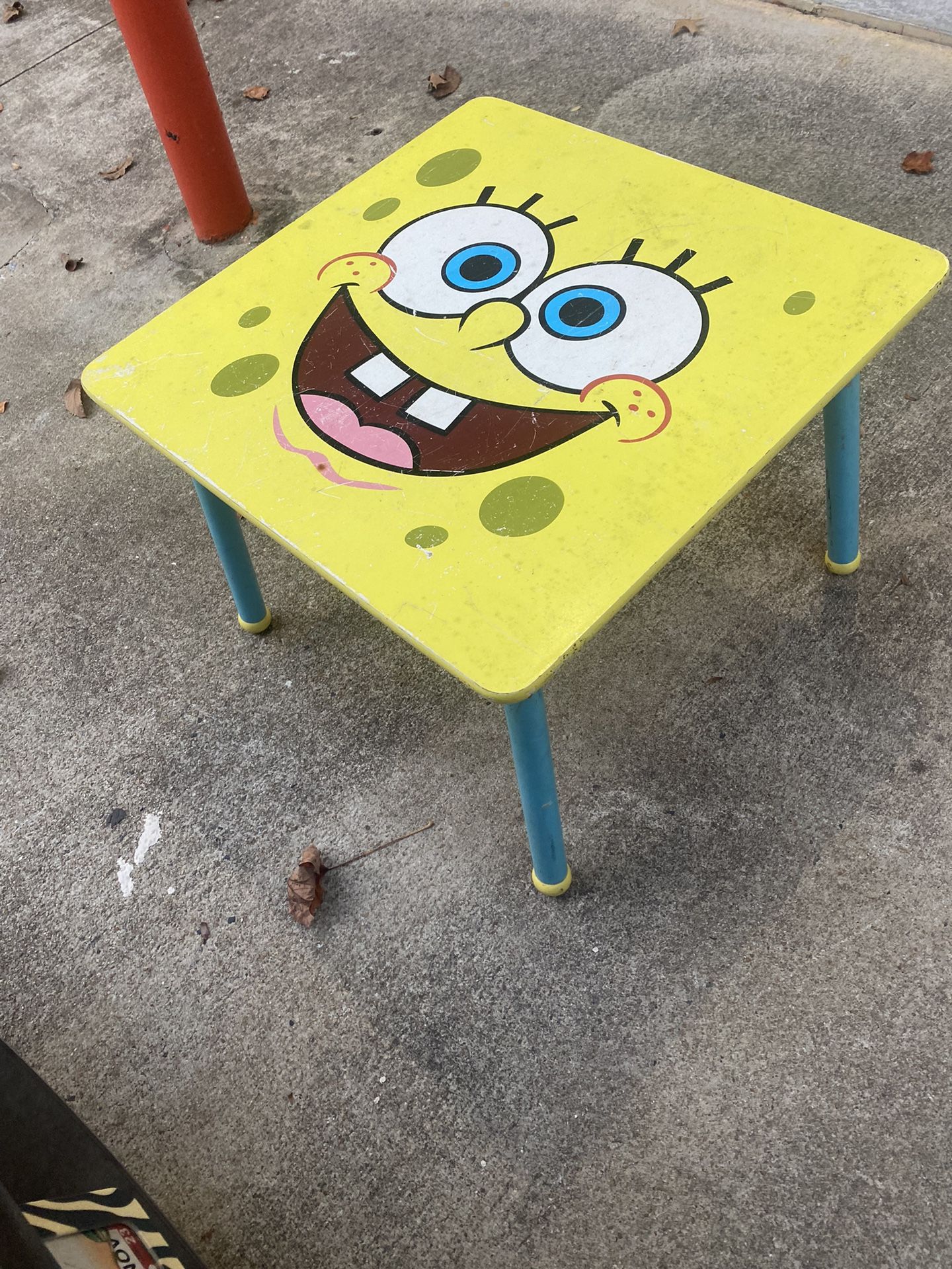 SpongeBob table just needs some cleaning up. 23” x 23” x 17.5” H I thought the Daisy Duck table was for cornhole, missing Minnie’s face as shown in the last picture and there are no legs so it’s just the table top.. Projects!!!