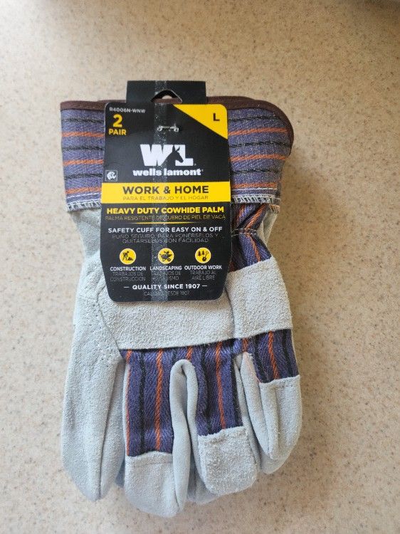 2 pair each brand new heavy duty work gloves. Each set has 2 pair (4 gloves total) brand new never used or opened. Amazon they're 10.00 plus shipping unless you have prime. So at this price they're 3 dollars a pair six for two pair. Will not separate pairs. Over 15 sets available. Won't last . Located in Apple valley pick up only.