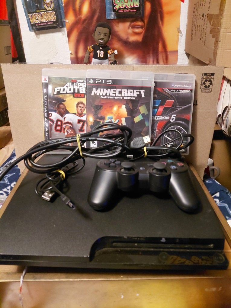 in working condition comes with three games all pro football 2k8/minecraft / grand turismo 5/ all complete with one chargin cord 1 controller, test it and good to go.