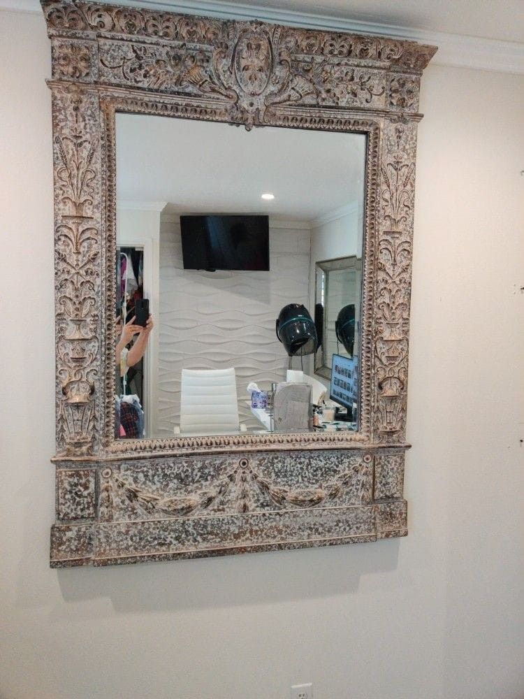 Beautiful mirror in an antique finish. Moroccan bohemian/boho style. It cost over $900. 59 x 42 inches