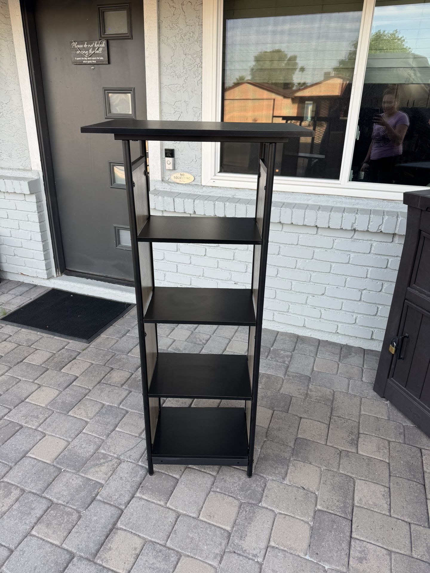 Please read the ENTIRE post LOCATION: Elliot and Dobson Measurements - 25 W & 15 3/4 D -- The Rest is 11 Deep 17.5 wide 55" Tall Color- Grey & Black 4 Tier bookcase- larger top for open storage Open bookcase, bookshelf, display shelving, shelving unit, cube storage Accent Shelf Home Living Storage and Organization Open display racks and shelves provide easy storage and display. Floor mount standing shelving unit bin storage, bin organizer, bookcase, bookshelf, toy storage, laundry room organizer, office storage, shelving unit, display rack made this from spare parts- all functional and sturdy - had cosmetic touch ups