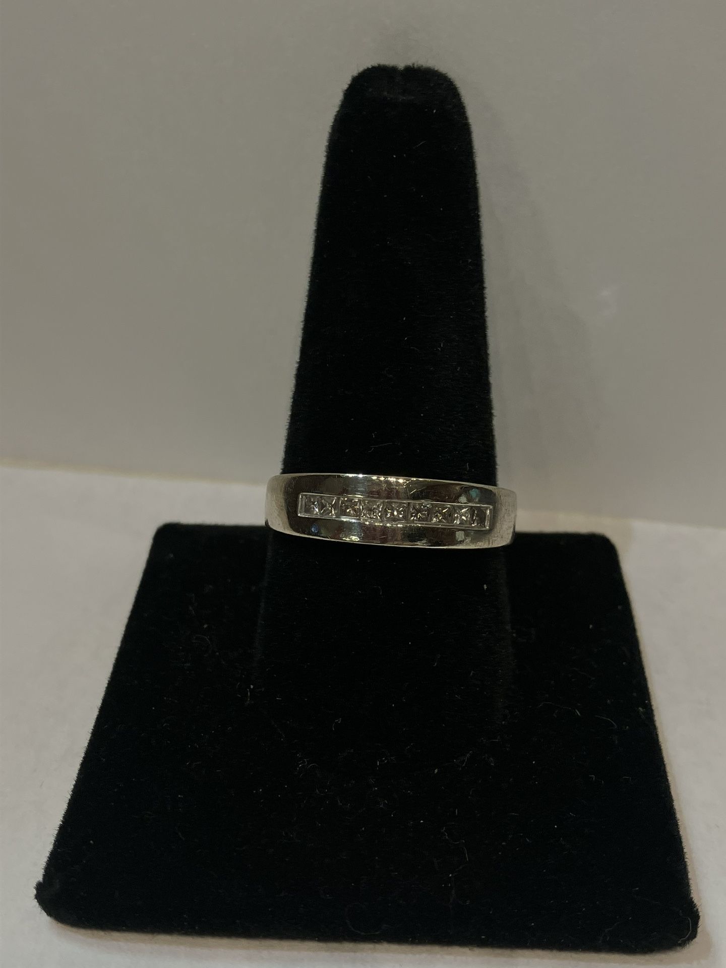 Tested and verified 14k white gold Clear stones Size 11 Oro express Mesa pawn shop Ask for Mariah Pickup only , no trades . 421 E Broadway rd Mesa,Az Monday- Saturday 9am-7pm Sunday 10am- 6pm 4806108009