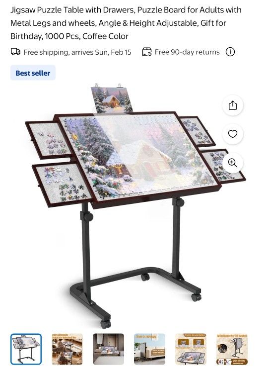 Brand New Factory Sealed in the Box 📦 Retails over $200 not including tax... Jigsaw Puzzle Table with Drawers, Puzzle Board for Adults with Metal Legs and wheels, Angle & Height Adjustable, Gift for Birthday, 2000 Pcs, Coffee Color