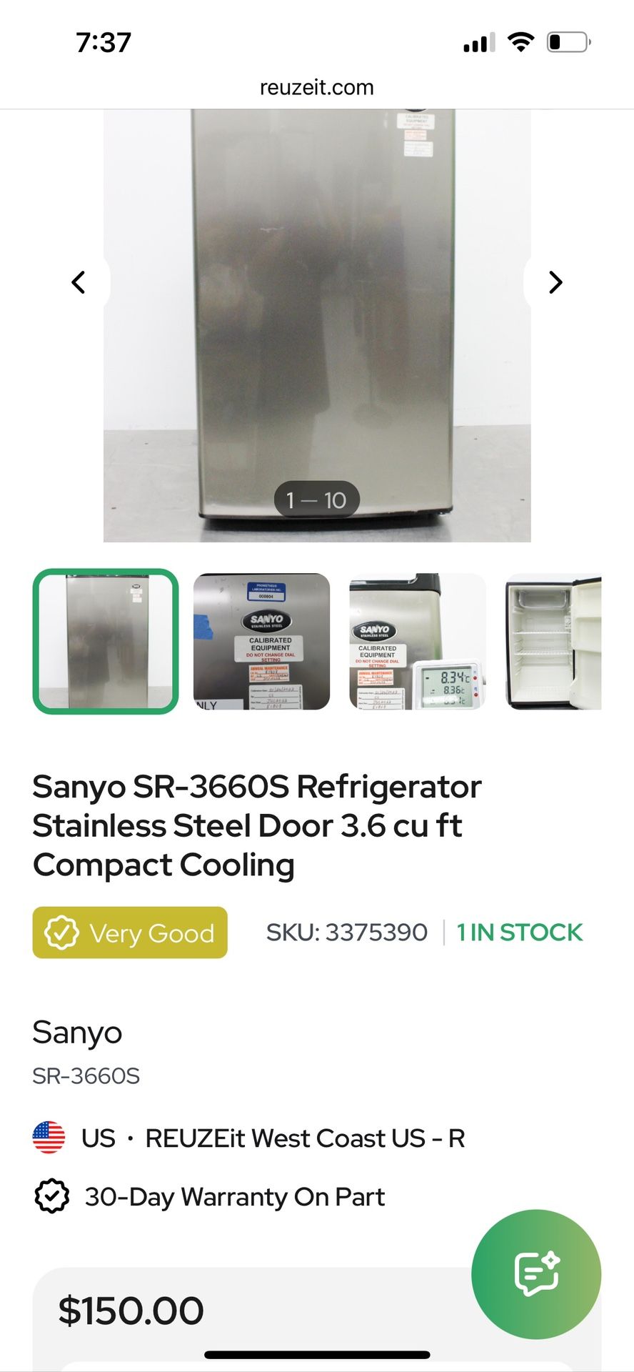 Sanyo 3.6 Cubic Feet Mini Fridge