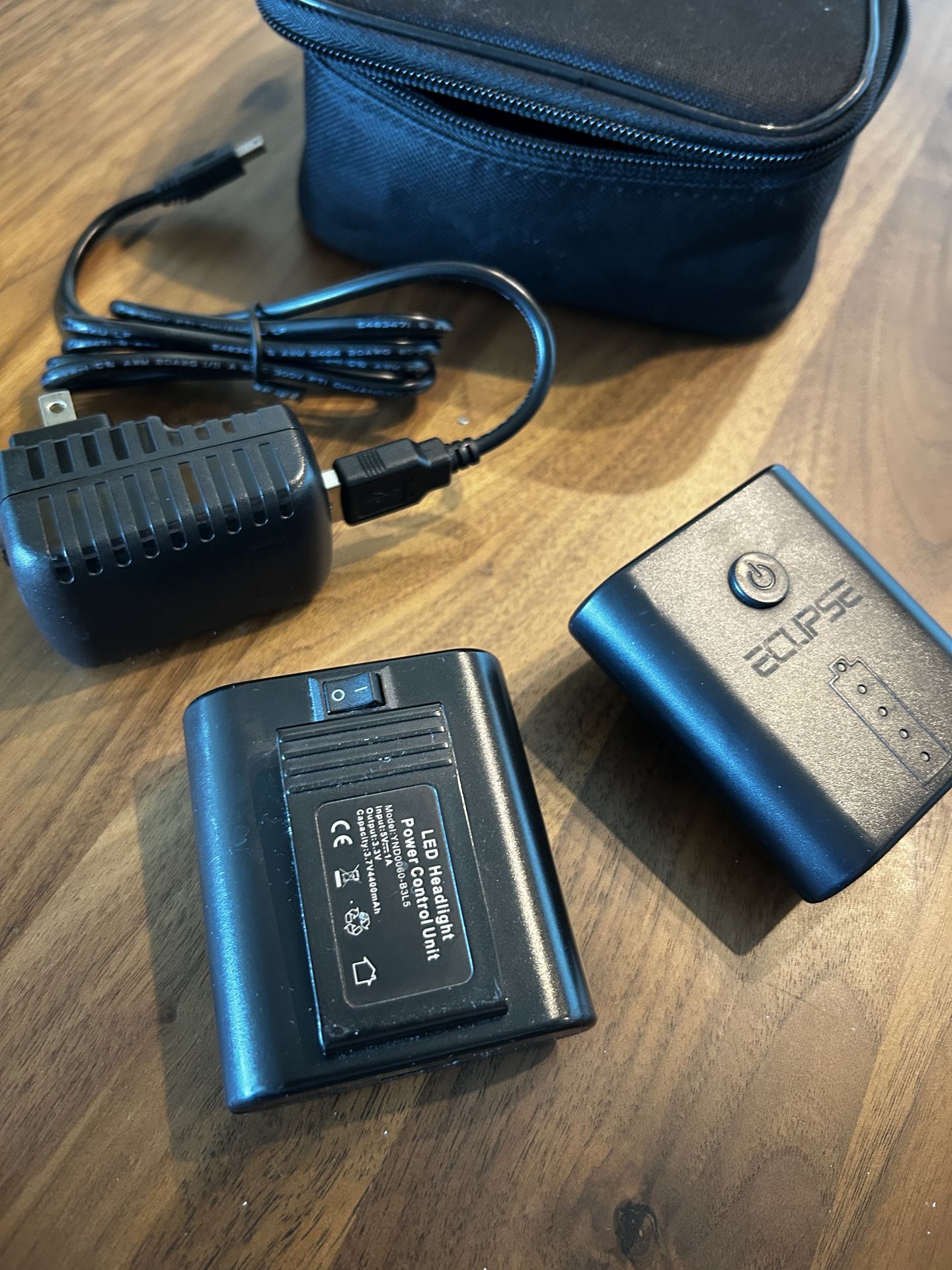 Two USB powered and rechargeable batteries for headlamp. Headlamp is broken.