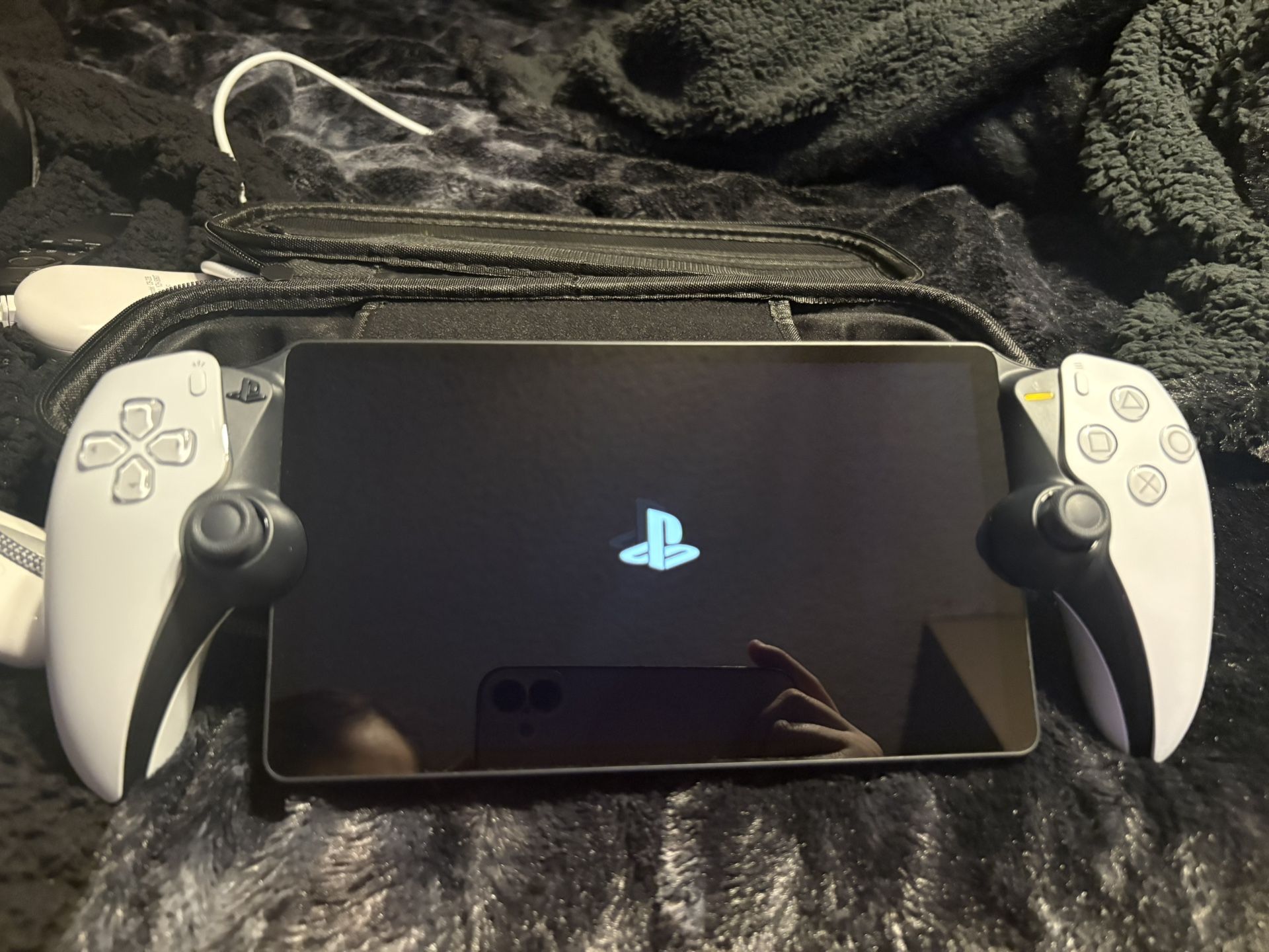 selling bc i only played on it twice, haven’t touched it since. takes usb-c chargers & must have ps5 to connect to. cloud gaming is needed to be purchased.