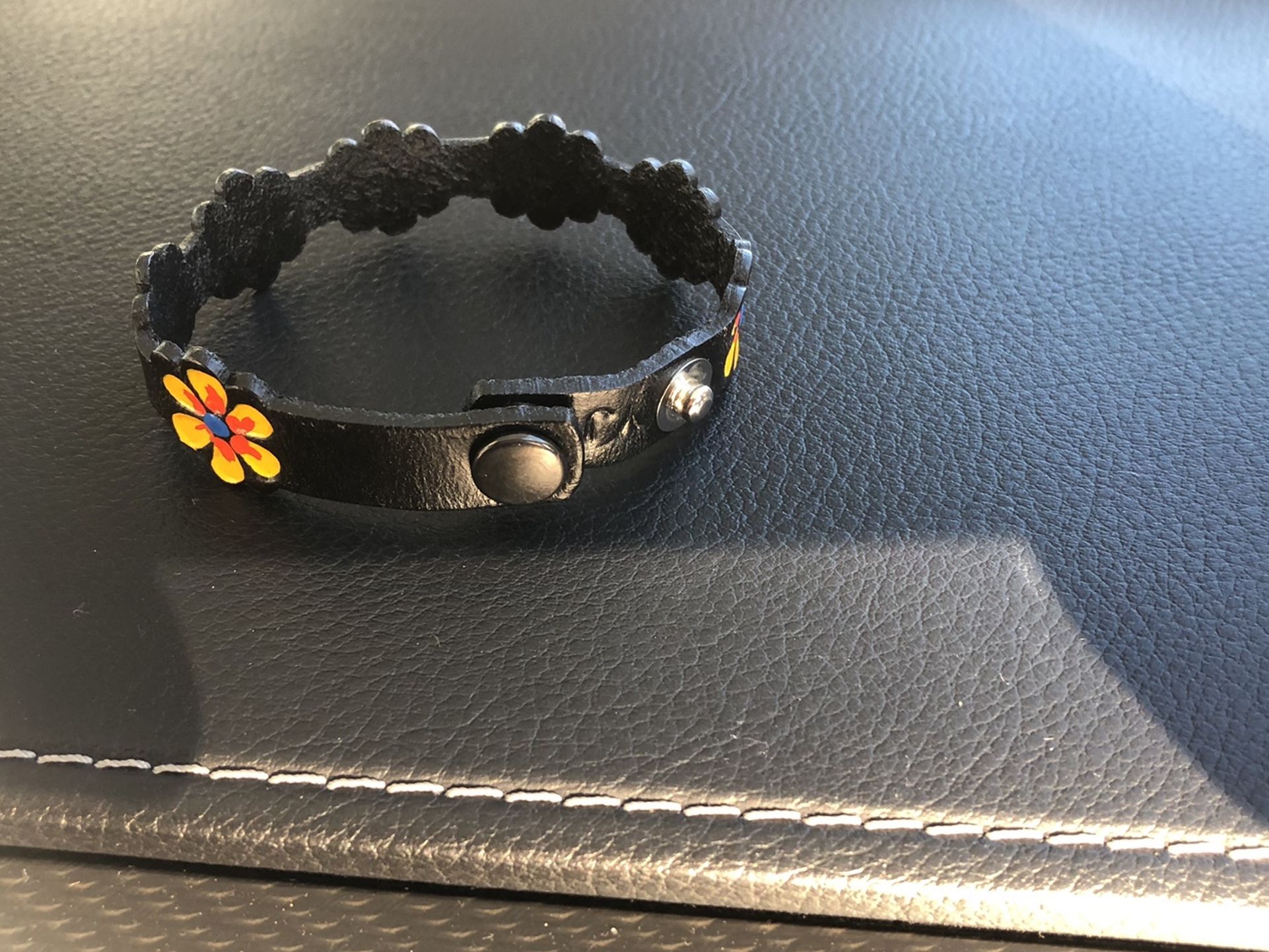 Authentic made Leather wristband with snap buckle