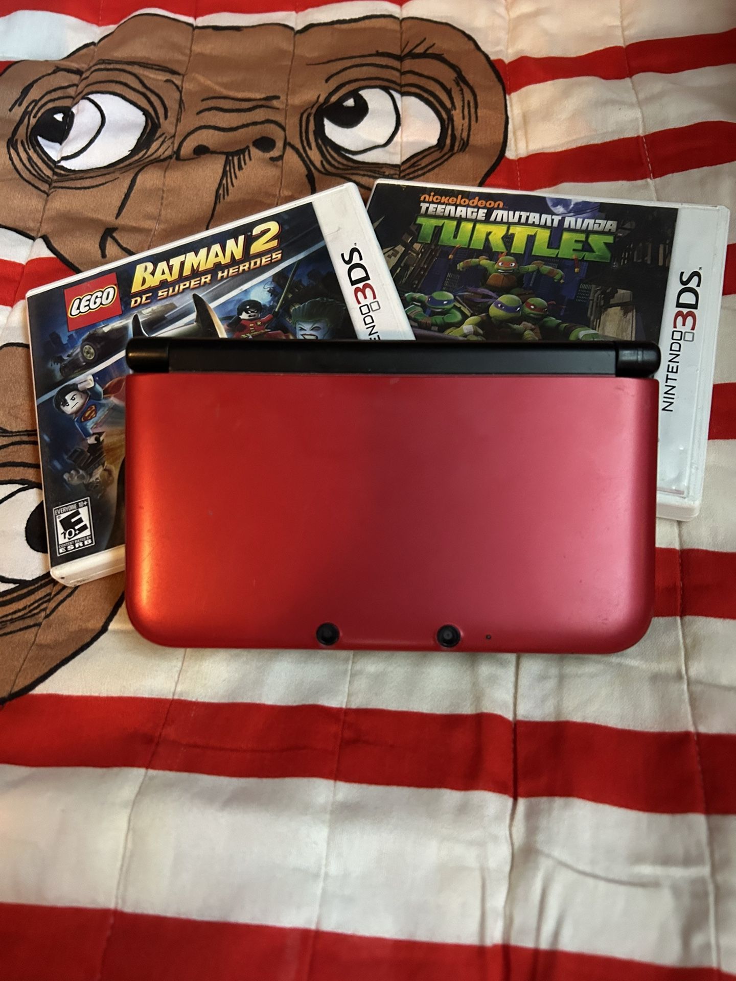 3dxl red and very good condition comes with two games as shown with charger $250 or trade for Video Games old ones or new ones