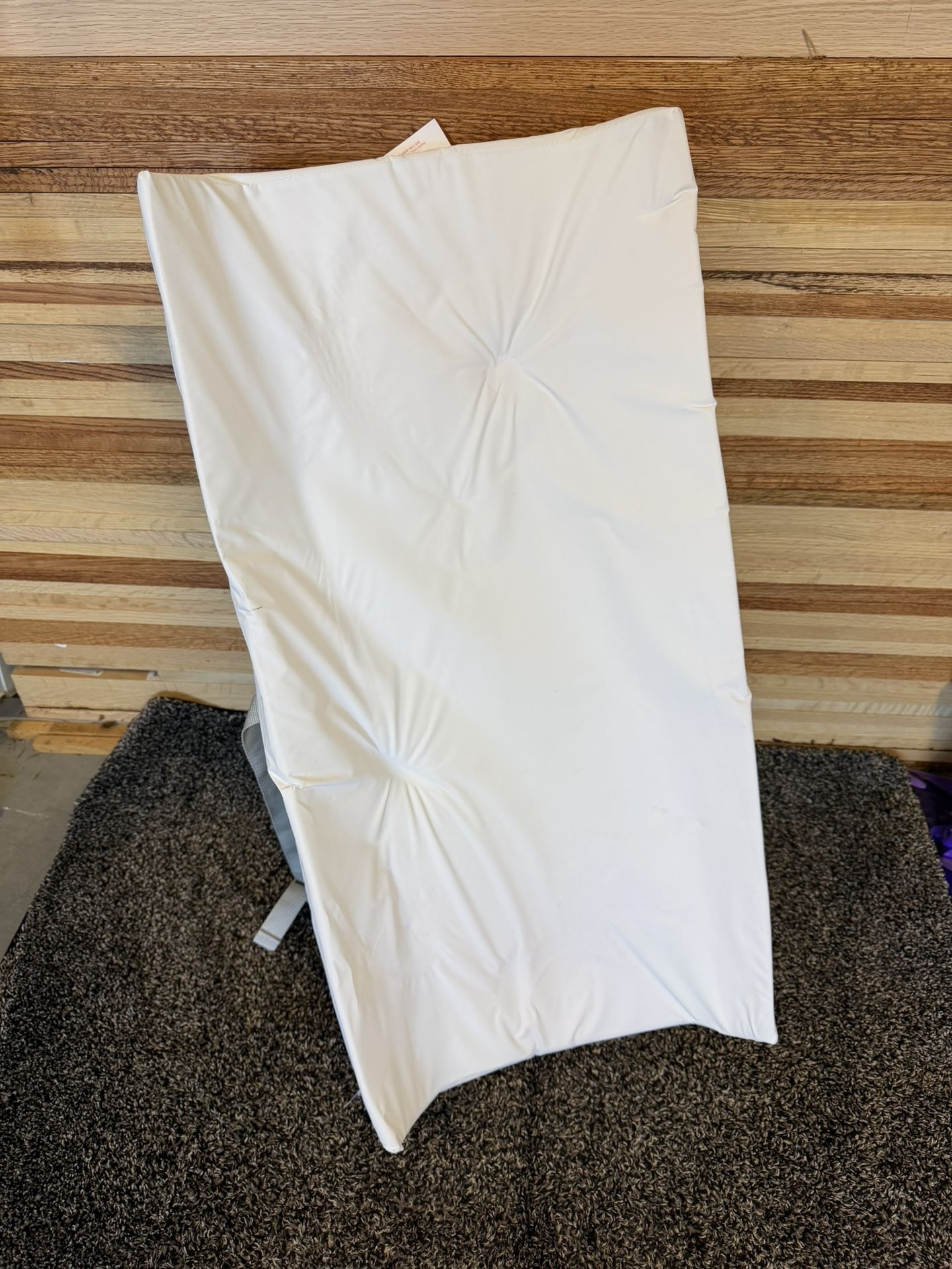 Delta Children Crib and Changer Changing Pad. Used for only 5 months at grandparents house. New $40; looks like on sale now for $32; selling used (like new) for $20. - local pickup only - see photo - like new - more details here: https://offerup.com/redirect/?o=aHR0cHM6Ly9hLmNvL2QvNVl6SldTNQ== Brand Delta Children Material Plastic, Vinyl Color White Item Weight 1.2 Pounds Product Dimensions 27"L x 16"W x 4"H FITS CRIB AND CHANGERS: This changing pad is designed for Crib and Changers | Upgrades your Crib and Changer with a more supportive and comfortable changing surface | Changing pad does not included safety straps, only use this pad with crib and changers that have safety straps attached MADE FROM HEALTHY MATERIALS: Supportive foam and premium sustainably sourced fiber core made from upcycled plastic bottles creates a healthier environment for baby KEEPS BABY SAFE: Changing pad features gently curved edges to keep baby safe and provides pressure point relief | Designed especially for Crib and Changers with an opening in the middle for the safety strap | Made with CertiPUR-US approved foams, which are made without PBDE flame retardants, mercury, lead and other heavy metals DIMENSIONS: 16"L x 27"W x 4"H | Fits most Crib and Changer changing areas
