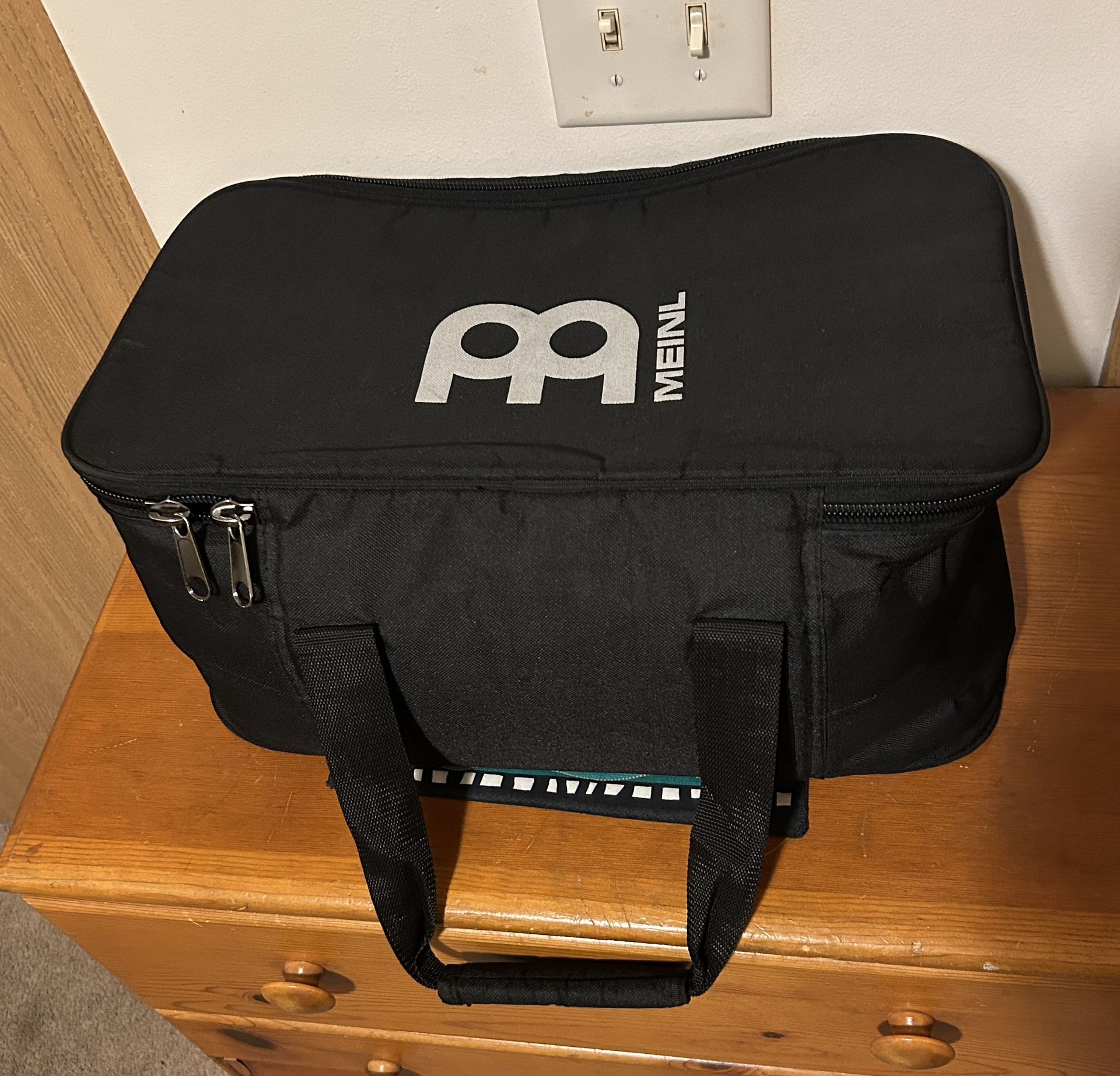 I have a Meinl bongo bag 17x9x9” 3 Meinl tambourine, jam block bags…etc. 10x10x2”. Bongo bag - $15 Tambourine/jam block bags - $10 each All for $30 Cash only transaction please. Thanks