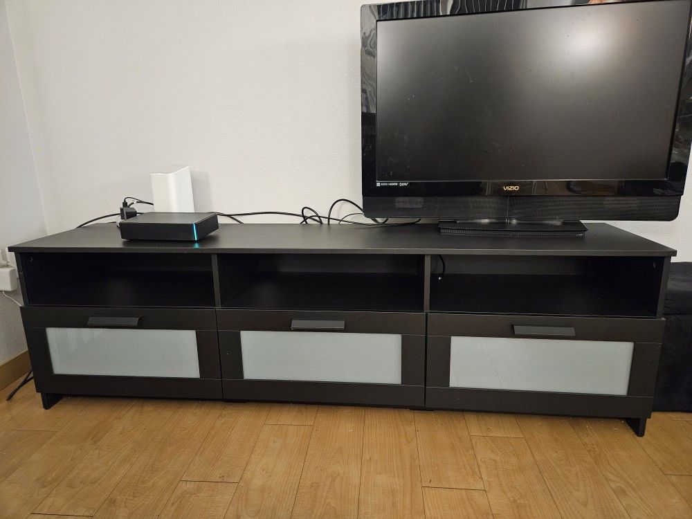 Ikea Brimnes TV stand. Good condition, has a few nicks on the front and a couple on the top. Drawers all work perfectly fine. Very heavy, will need to be carried down from the second floor.