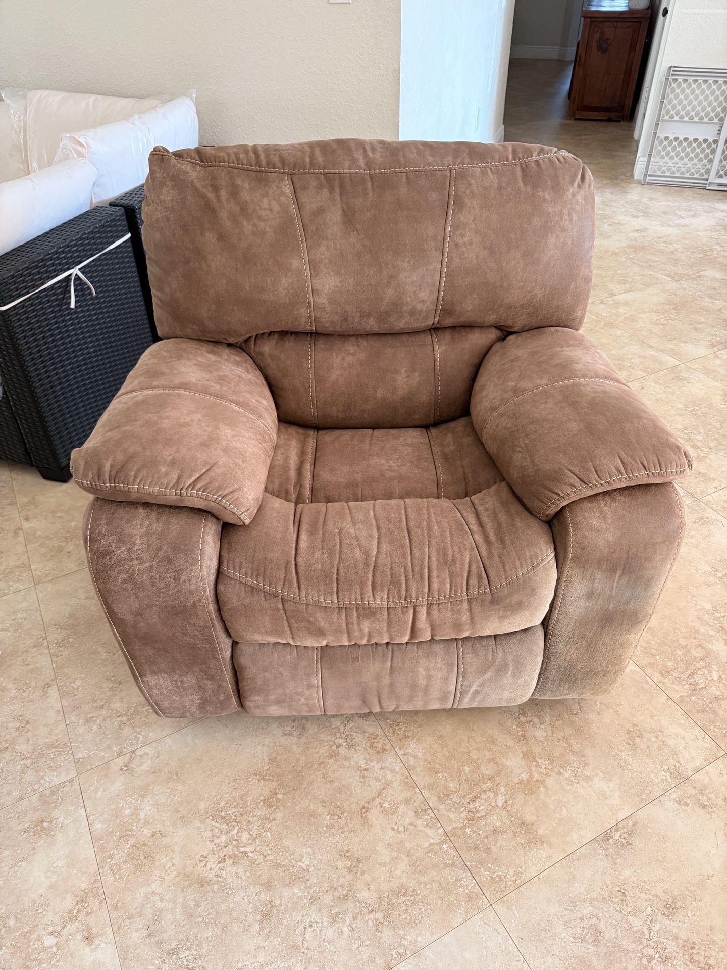Very nice and super comfortable recliner chair. Has a small rip in the back.