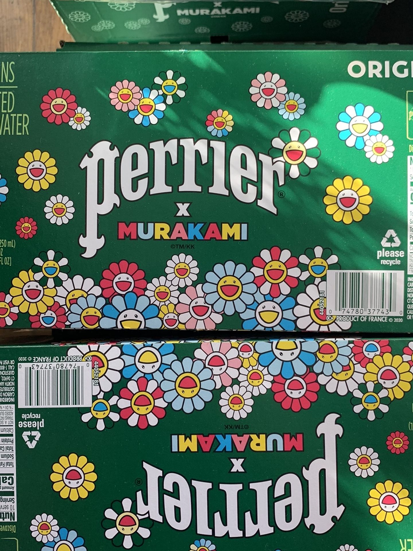 MURAKAMI and Perrier colab slim cans small glass large glass