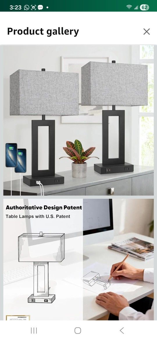 Set of 2 Modern Touch Control Table Lamps with 2 USB Ports, 22’’ Large Bedside Nightstand Lamps 3-Way Dimmable Desk Lamp with Grey Fabric Shade for Be