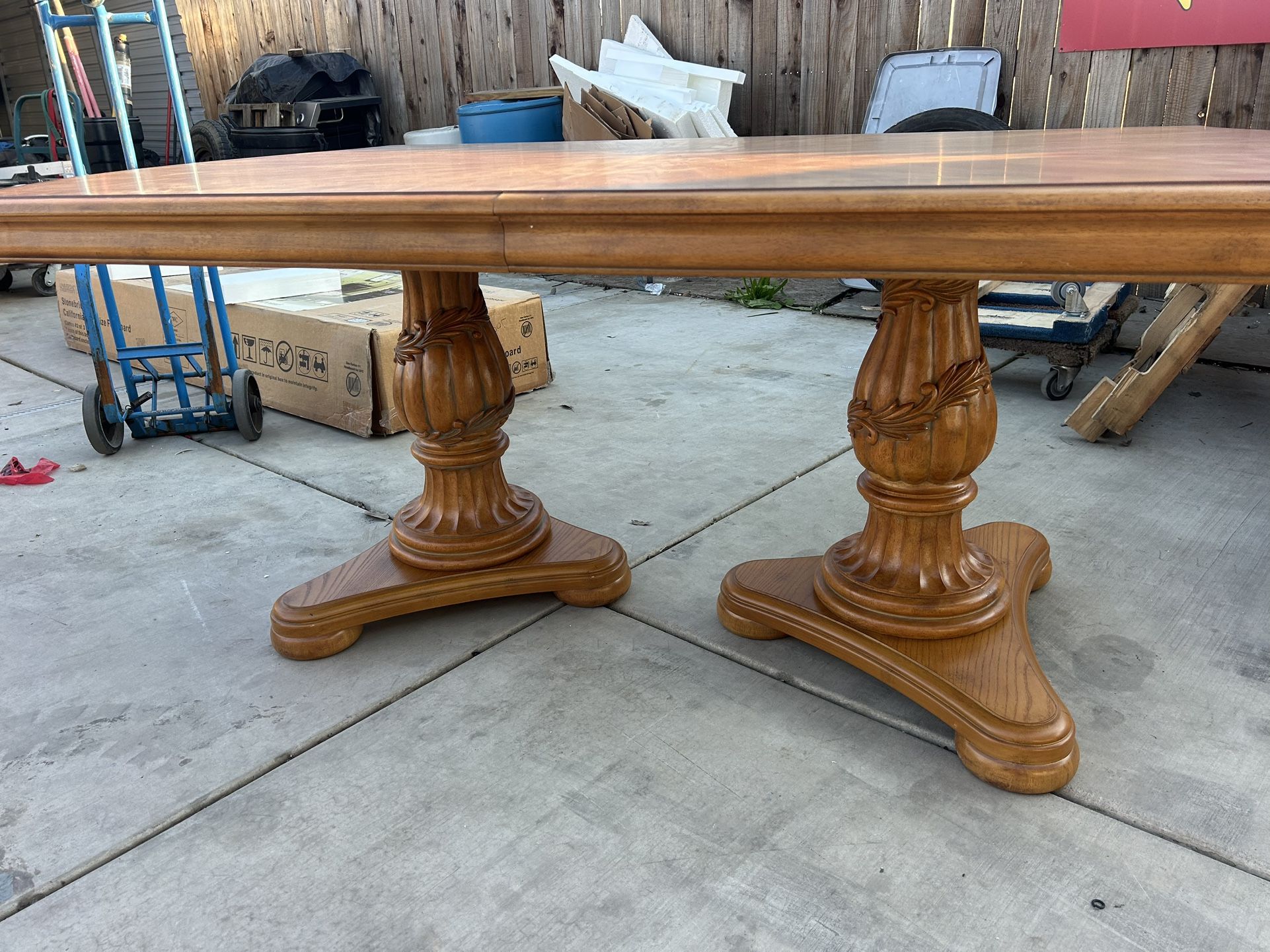 I HAVE A NEW TABLE , I THINK ITS OAK, ITS 6-FOOT WITHOUT THE LEAF OR 9-FOOT WITH THE LEAF, FOR ONLY $150.