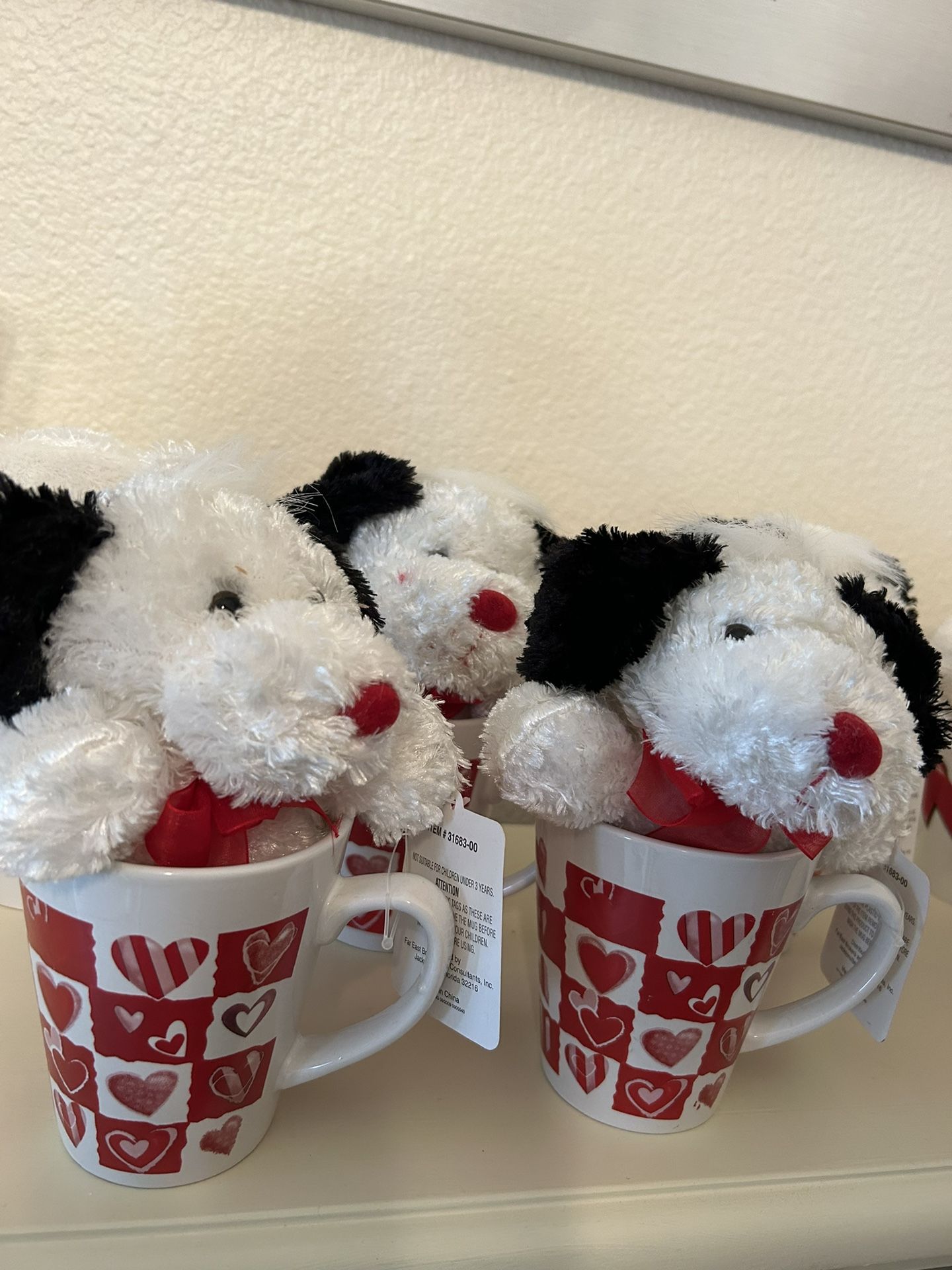 New Coffee Cups with Stuffed Animals Inside Planning a get-together? Need party favors for a birthday? Grandkids coming for a visit? These are all new. With sales-tags still on each cup. Three different cup designs. One set of 5. One set of 2. And one set of 4. All eleven cups and eleven stuffed animals for $33. $3 each
