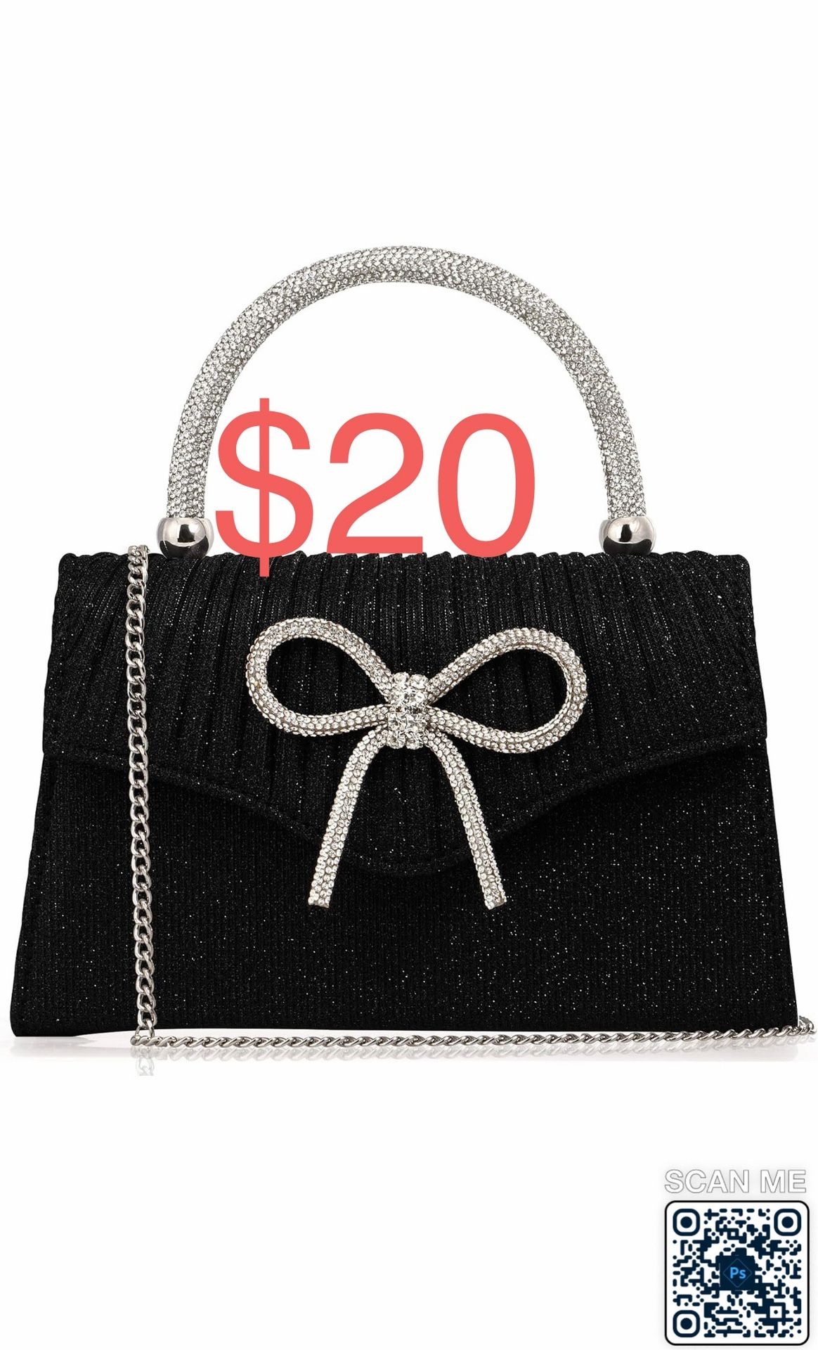 Sparkling Evening Clutch Purse for Women,Rhinestone Bow Top Handle Party Handbag,Wedding Prom Formal bag