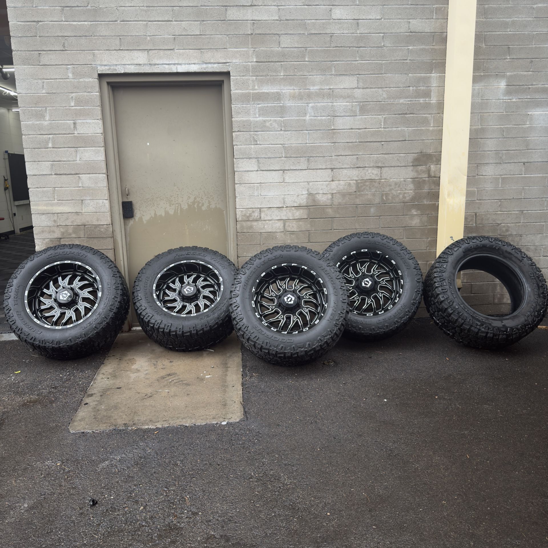 35x12.50x20 12 ply Cooper Rugged Trek tires on 20 inch TIS Wheels universal fit. 4 wheels and one extra tire. Tread life 70% on the 4 wheels, pretty much new on the extra tire. Ceramic coated them before even put on. New TPMS sensors when installed. Tires have never been patched. Selling because I am going to be dropping my truck.