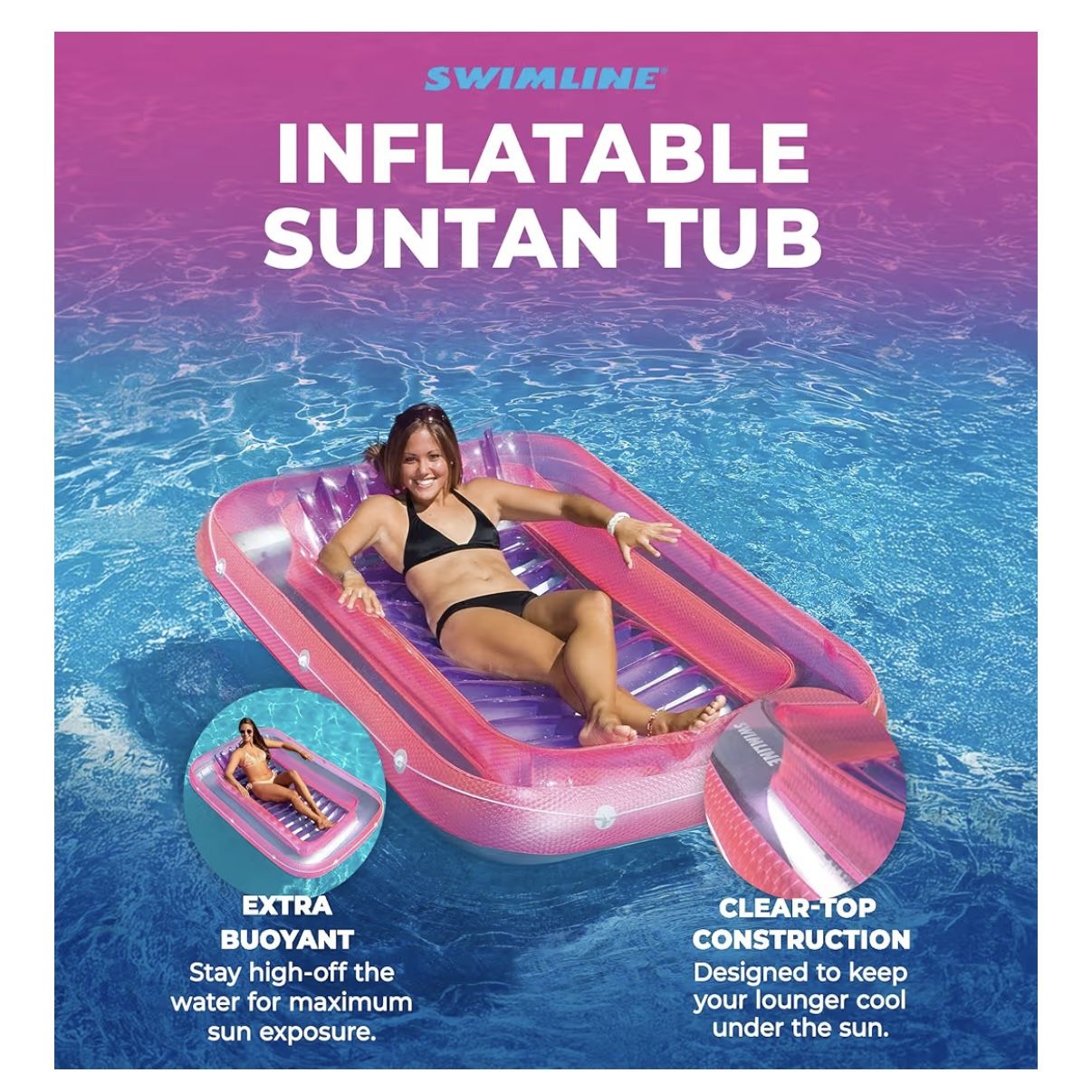 SWIMLINE Suntan Tub, Classic Inflatable Tanning Lounge Float with Adjustable Pillow