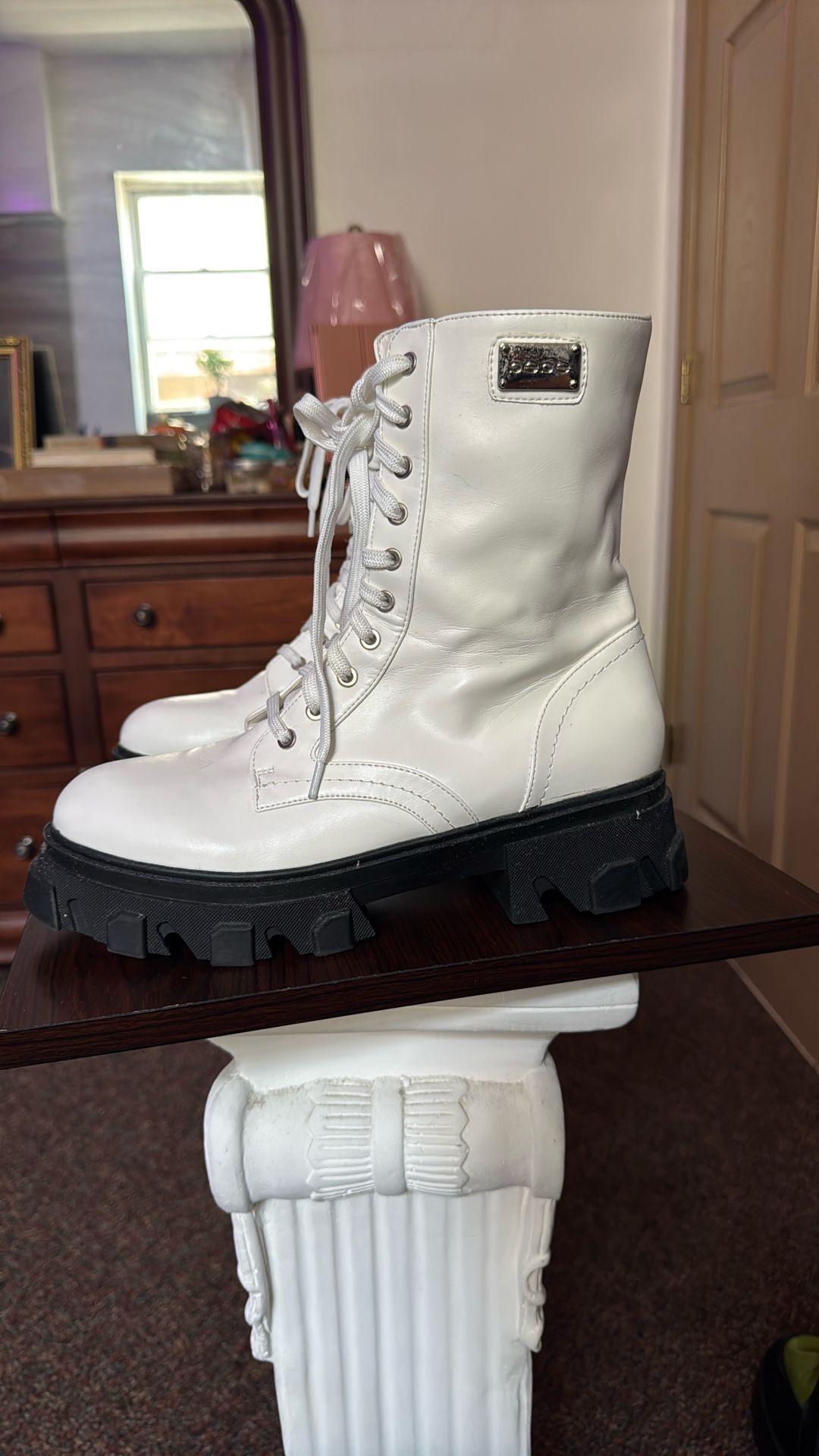 Boots are brand new no box been In storage never used white size 9 laces still pearl white… cash only no trades …