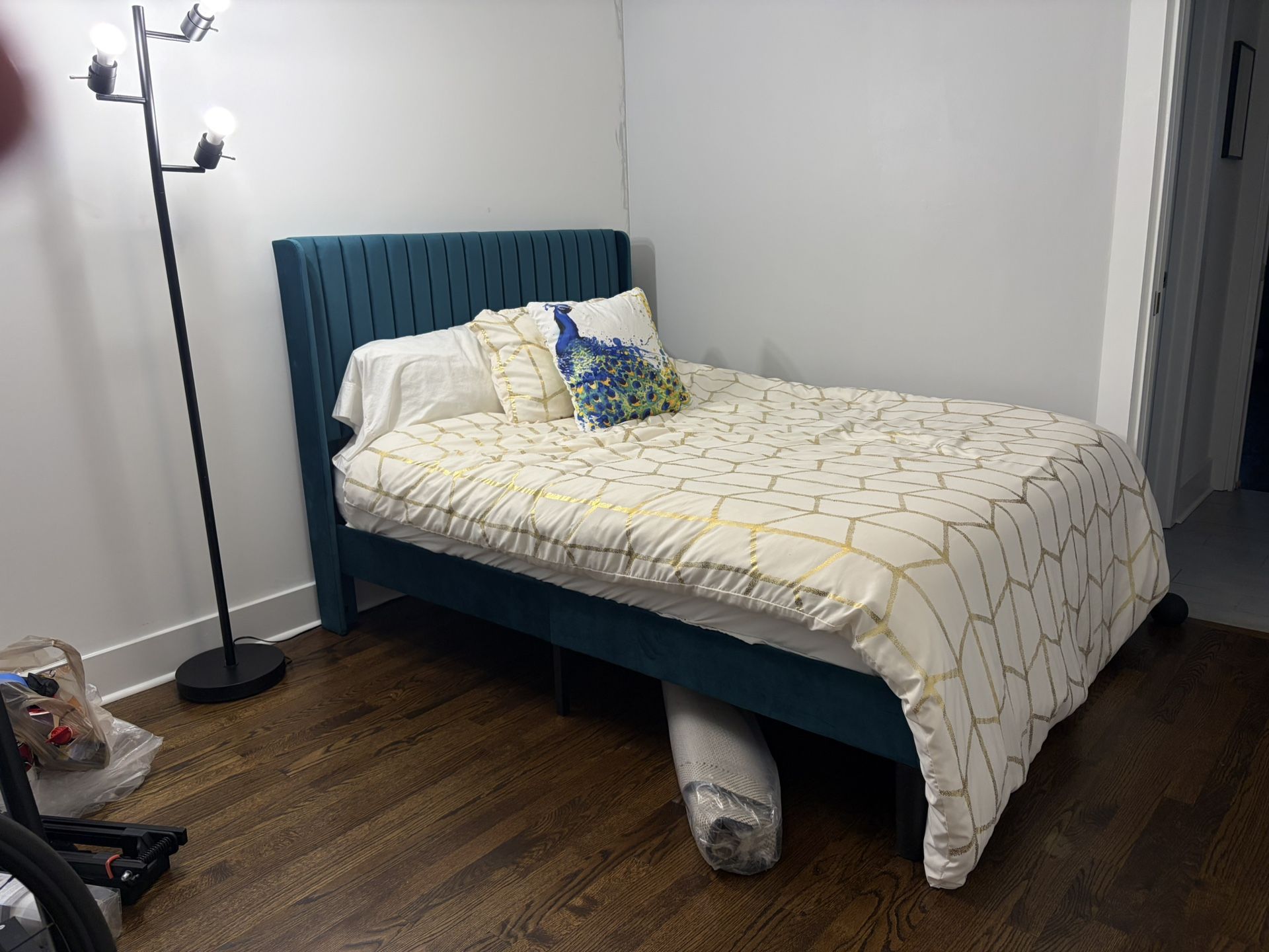 Mattress and bed frame have been used less than five times. We are turning this guest bedroom into a baby room. We bought this less than a year ago. MSRP for both would be $382 before taxes on Amazon. We will gladly take $115. Happy to bring the mattress and bed frame to a convenient location to exchange in public or I can drop off at your house.