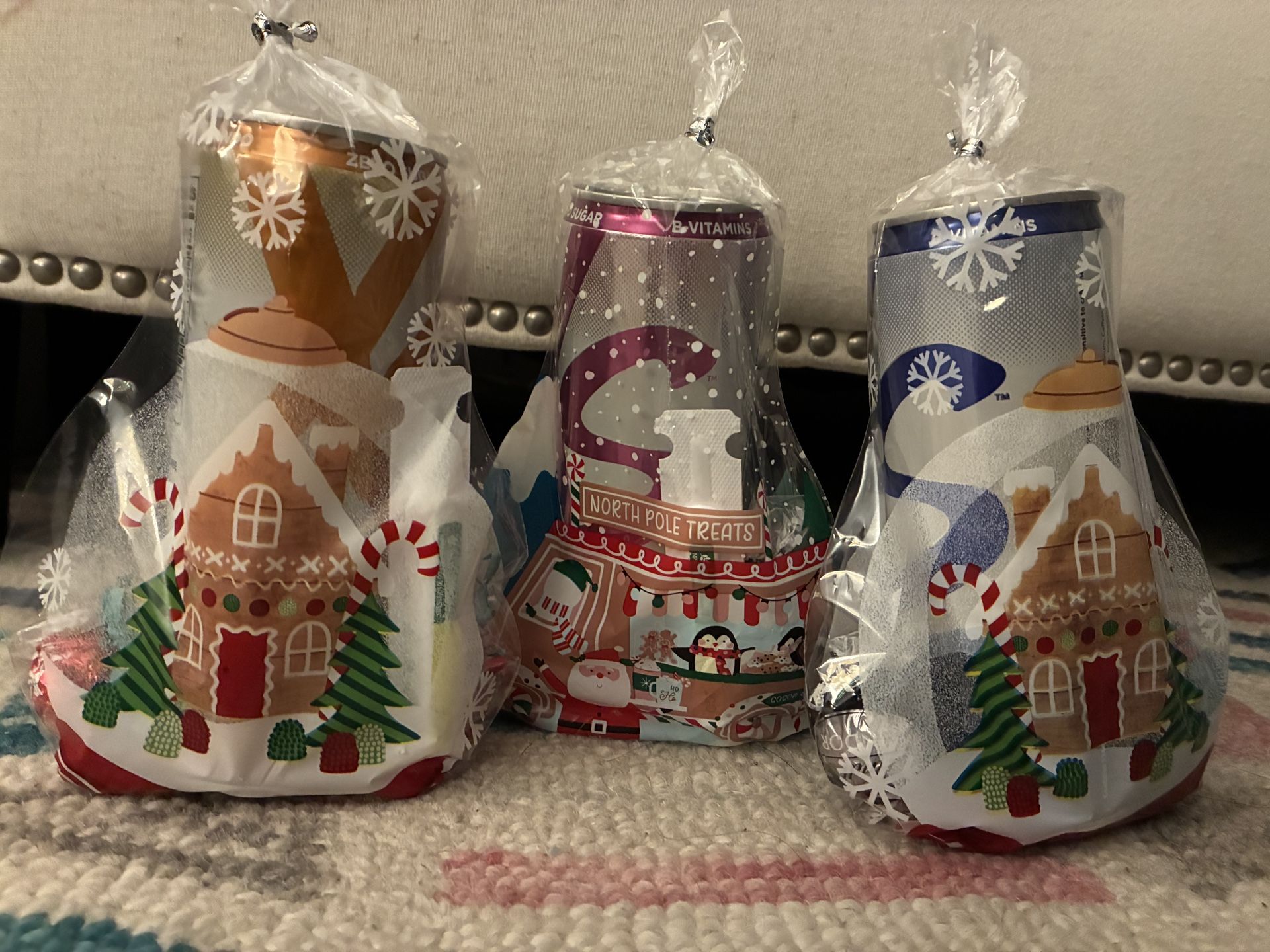 Handmade gift bags for any celebration/holiday gift. Perfect gift for coworkers, family, friends, or anybody you need a last minute gift for. Quantity: 12 SPECIAL DEAL: Buy all 12 for just $70 (Save $14) Includes: 1 XS Energy drink (flavor varies) 1 Nutrilite Twist Tube 2Go (flavor varies) 1 Lindor Chocolate (flavor varies) 1 Christmas chocolate All wrapped in a beautiful, decorated bag.