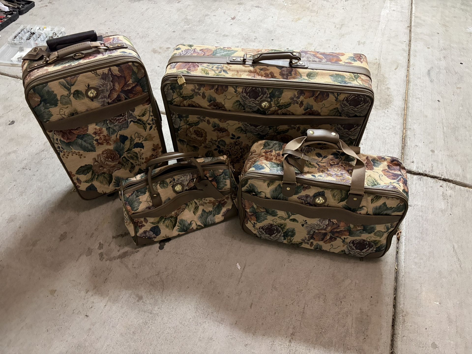 Gently Used~ Vintage Jaguar Floral Print 4 Piece Luggage Set