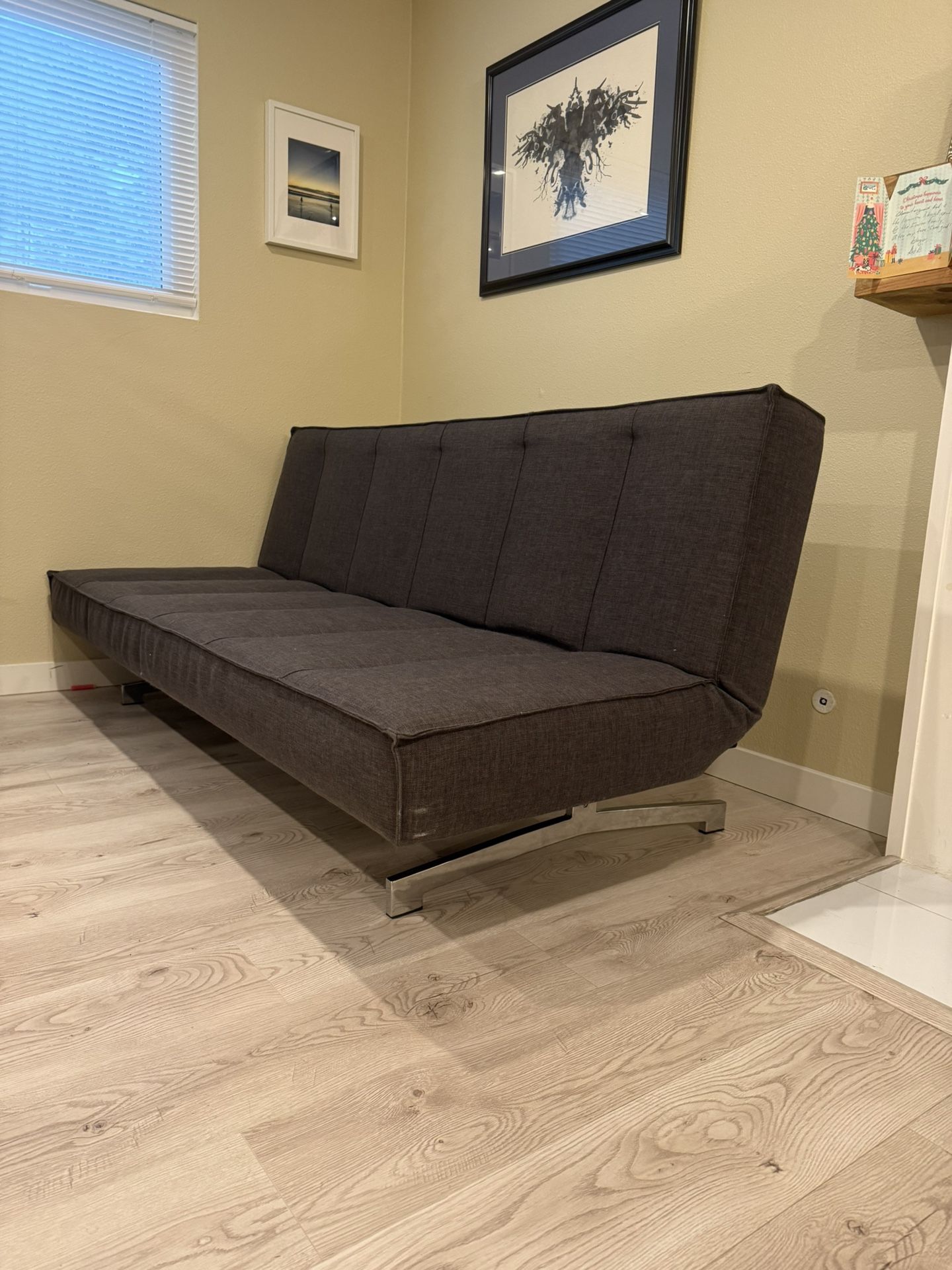 Stylish and functional, this CB2 Flex Gravel Sleeper Sofa in a neutral gravel gray is perfect for small spaces. It easily converts from a sofa to a comfortable bed, making it ideal for both seating and guests. • Color: Gravel Gray • Dimensions: 79” W x 36” D x 34” H (Sofa) | 79” W x 47” D x 16” H (Bed) • Condition: Recently professionally cleaned • Pick-Up Only This modern sleeper is lightweight, durable, and a great space-saver. Must pick up from El Sereno. A great deal on a versatile piece!