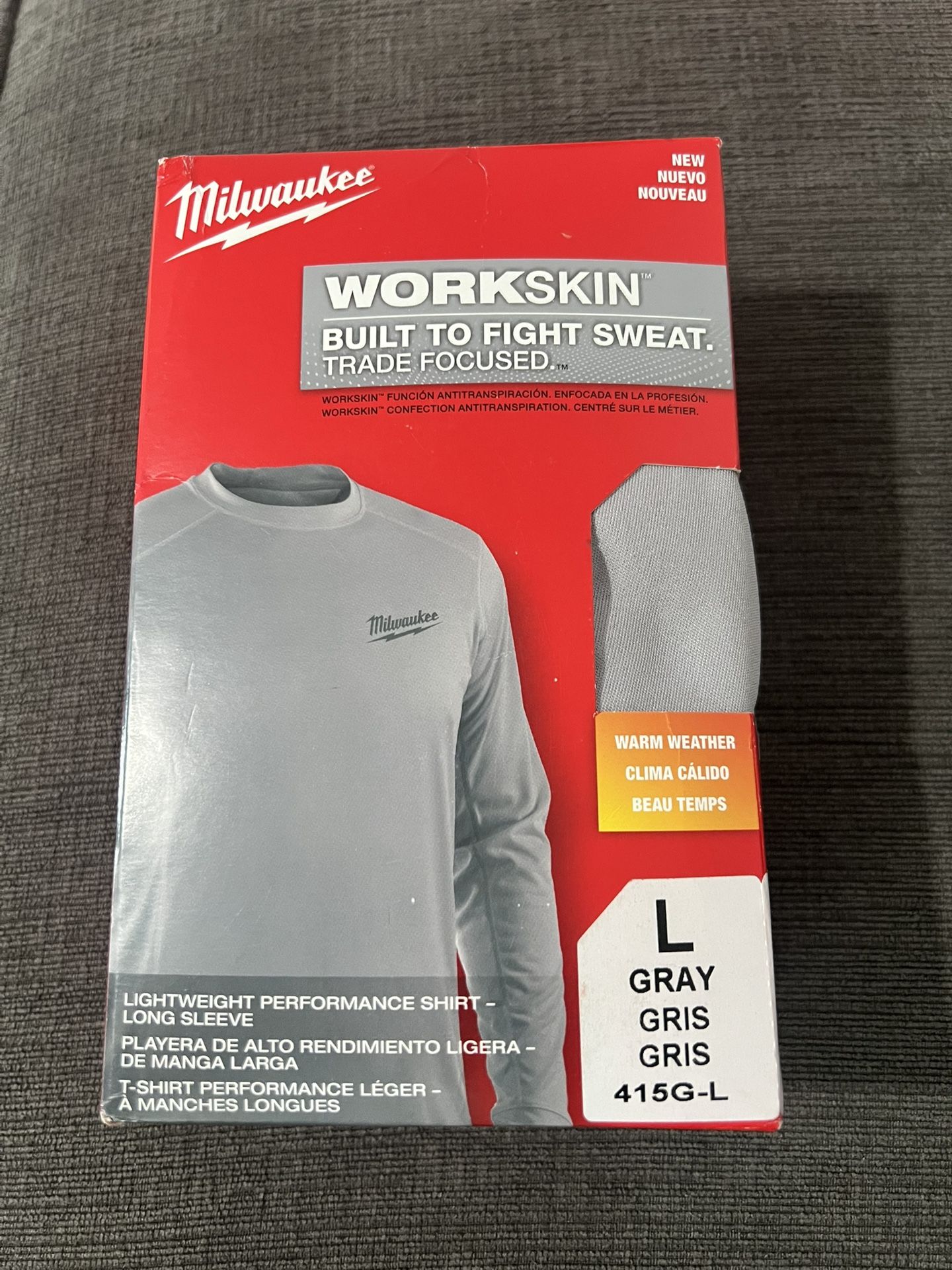 Milwaukee Men's Work Skin Large Gray Light Weight Performance Long-Sleeve T-Shirt