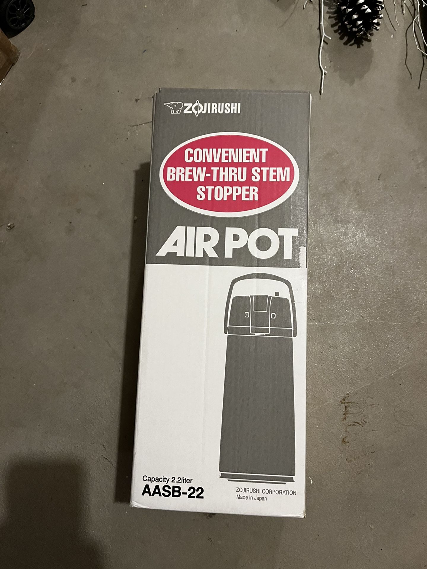 Brand new, still in the box 2.2 liter Air pot beverage holder. Keeps beverages warm for hours. L