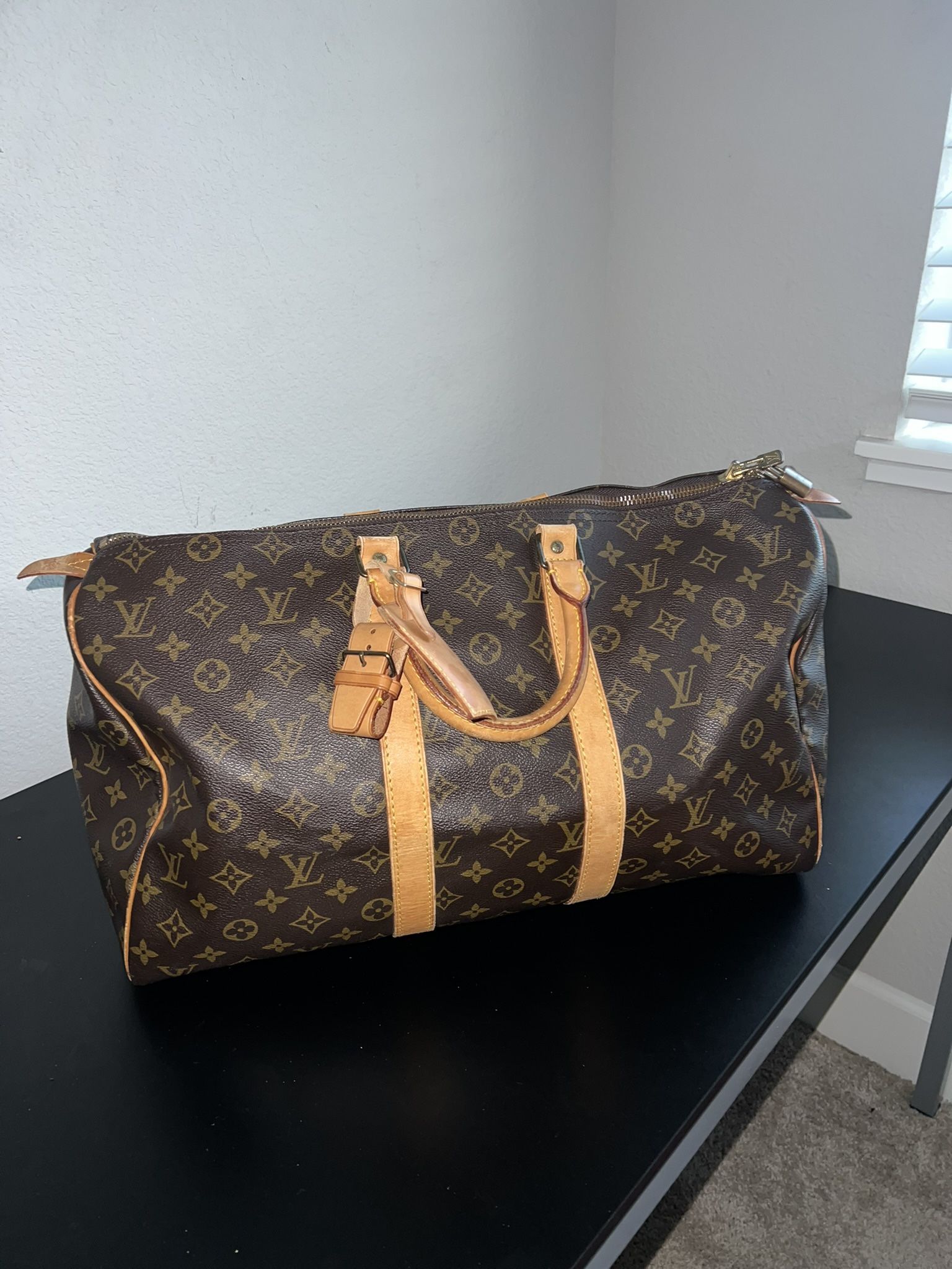 Specs: • Model: M41428 • Date Code: VI894 • Size: 45cm (carry-on approved) Condition: • Handles: Minor darkening + light wear • Leather trim: Natural patina + small scratches (normal aging) • Zipper, corners, and hardware: All clean • No peeling, stains, or stickiness ⸻ What You Get: • Authentic LV Keepall 45 • Name tag • Padlock + keys
