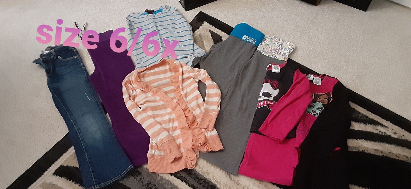 Levi Jean's are new without tags, other 3 pants are like new and only worn once or twice. 2 very cute long sleeves, one like new, other in very good condition. 2 pairs of monster high pajamas.