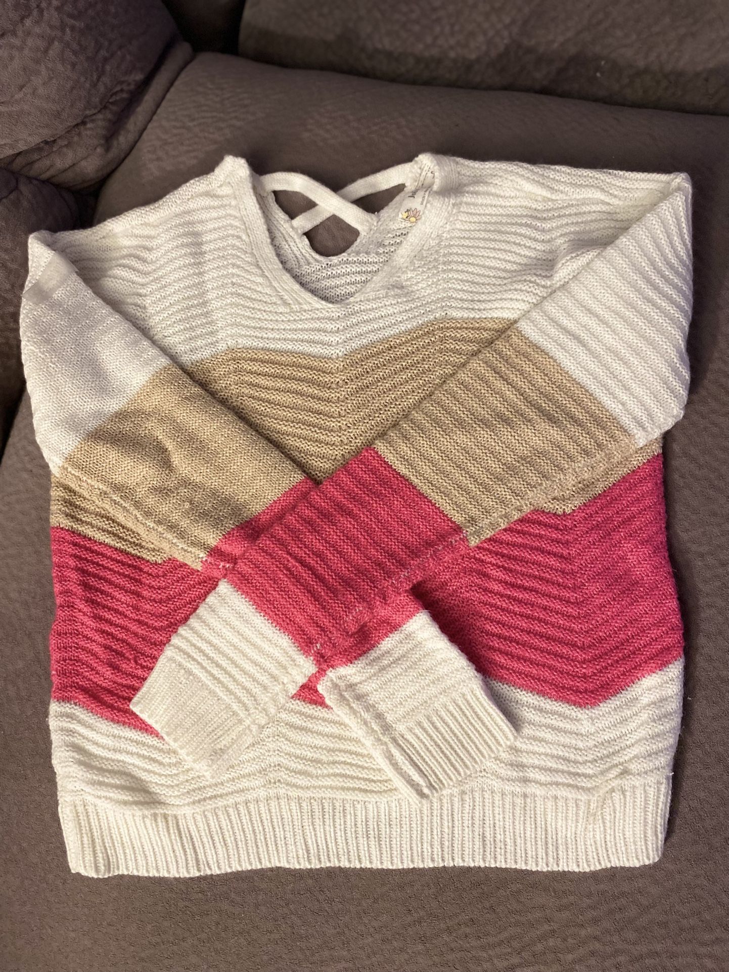 Beautiful girls sweater with pink, cream, and white tones. Excellent condition! COVID free home ✅