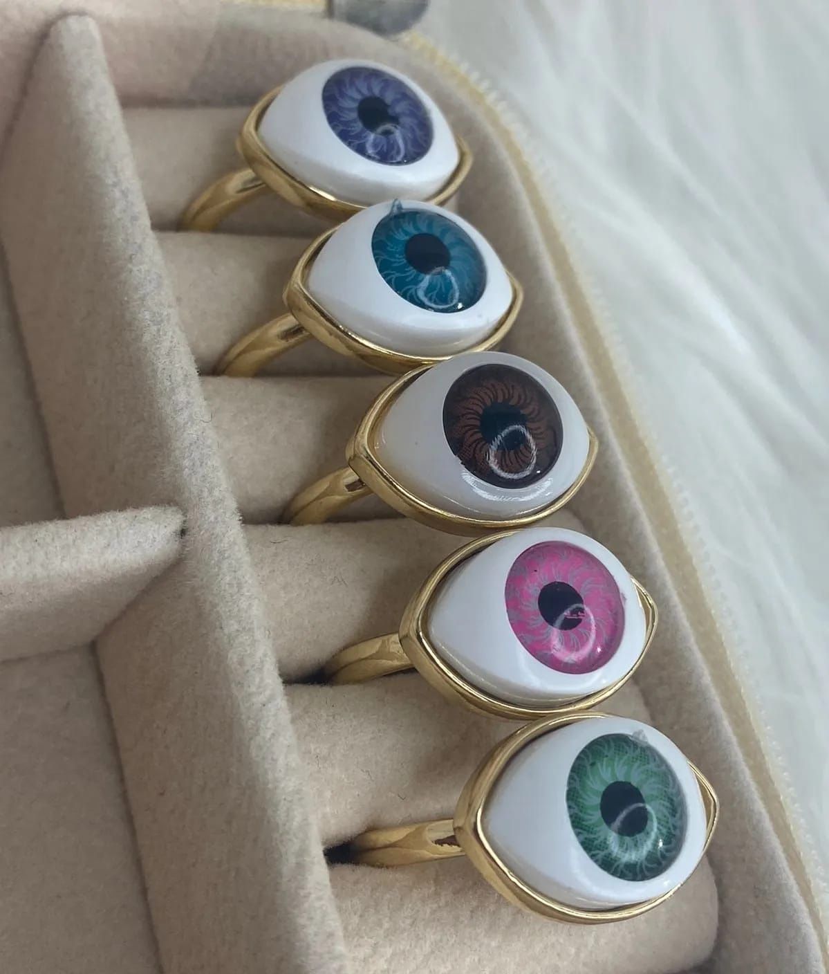 π Introducing our exquisite 24k gold plated eye rings, meticulously handcrafted to perfection! Elevate your style with our stunning collection featuring a spectrum of vibrant colors to match every personality. Each ring is a unique masterpiece, exuding elegance and luxury. Shop now and dazzle with sophistication!