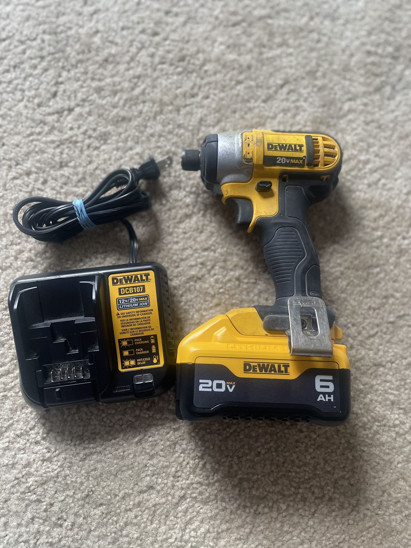 Dewalt 20V Driver that works good! Comes with brand new 6AH battery and a charger. Sold as a bundle.