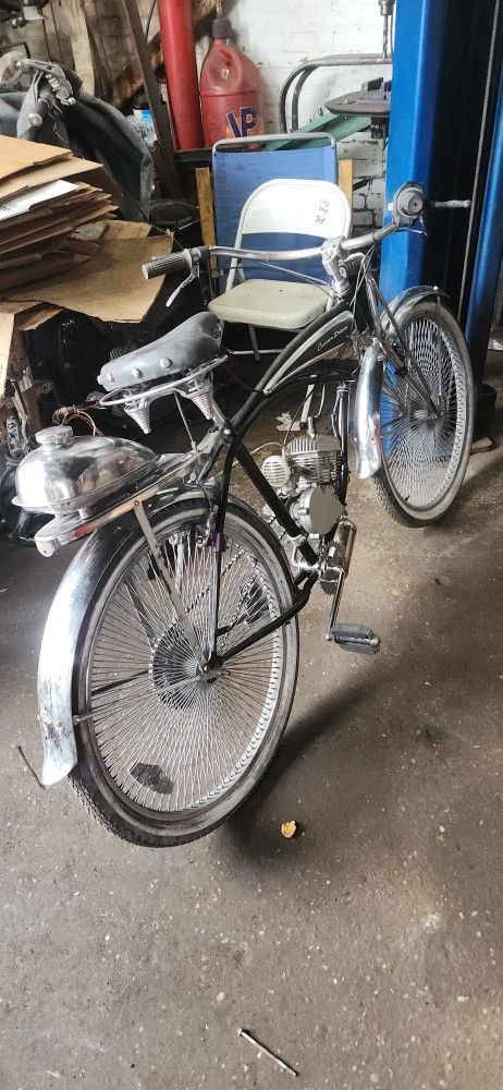 Original Schwinn Deluxe with motor don't know much about it it's been sitting for years motor spins free call Chris blue dog (contact info removed)
