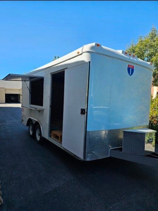 2020 8'x16' Loadrunner trailer with ramp Concession window Stainless steel folding shelf Fully insulated walls & ceiling Painted interior Built in shelves in front of trailer Diamond plate tongue box Led interior lighting Pink slip in hand in my name, ready to sell.