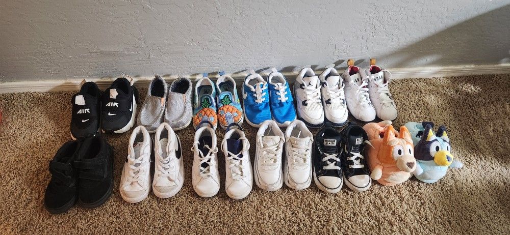 Sizes 9 and 10. Prices on pics. My son has decided all he wants to wear are crocs so most of these are new lol. Jordan's, Nike's, vans, bluey slippers and more!!